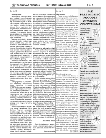 GŁOS ZNAD PREGOŁY (ze str. 8) Sznury tirów Spróbuj my podsumować: przy bardziej rygorystycznych przepisach chroniących przyrodę obowiązujących na terenach parków narodowych wyrąb lasów, przej eżdżaj ące sznury tirów, wycinanie alei przydrożnych, dzikie budownictwo, polowania nie byłyby tutaj możliwe. Przynajmniej na obszarze obecnego Mazurskiego Parku Krajobrazowego i na jego obrzeżach. Dlatego opór ludzi, którzy czerpią korzyści z obecnego stanu, jest tak silny. Lasy mazurskie są przez leśników traktowane jako wielkie magazyny drewna. Brzegi jezior dla wielu ludzi z miast stanowią jedynie miejsce, gdzie warto zbudować dom. Myśliwi będą bronić terenów łowieckich. Przewoźnicy – najkrótszych tras przejazdów do wschodniej granicy. Wszyscy ci przeciwnicy parku narodowego na Mazurach tworzą zwarty front. Niestety, po ich stronie opowiada się, jak dotąd, Ministerstwo Środowiska. Argumenty powtarzane od lat są takie same: zahamowanie rozwoju gospodarczego, związany z tym brak zgody lokalnych samorządów i opór miejscowej ludności. Brak funduszy. Z drugiej strony są przyrodnicy – naukowcy z Państwowej Rady Ochrony Przyrody (PROP), stowarzyszenia społeczne, organizacje pozarządowe, ekolodzy i publicyści. Argumenty tej strony także są niezmienne: park narodowy jest jedyną skuteczną formą ochrony przyrody mazurskiej. Jeżeli nie powstanie, dewastacja będzie trwała nadal. Mazury stracą swój niepowtarzalny charakter. Warto w tym miejscu przytoczyć opinię Państwowej Rady Ochrony Przyrody – gremium składającego się z najwybitniejszych przedstawicieli nauk przyrodniczych w Polsce. W odpowiedzi na apel dwóch stowarzyszeń społecznych, skierowany do ministra środowiska Jana Szyszki w roku 2007 (kopie tego apelu otrzymali także prezydent Lech Kaczyński i ówczesny premier Jarosław Kaczyński), czytamy: „Rada przyłącza się do państwa apelu. Str. 9 Nr 11 (160) listopad 2009 (ze str. 1) PROP postrzega utworzenie Mazurskiego Parku Narodowego w szerszym kontekście (…) dla zabezpieczenia reprezentatywnej części polskich walorów przyrodniczych konieczne jest utworzenie jeszcze co najmniej trzech parków narodowych (Jurajskiego, Mazurskiego i Turnickiego (…), kilkudziesięciu parków krajobrazowych i kilkuset rezerwatów przyrody. Tymczasem PROP z niepokojem zauważa, że prace nad uzupełnieniem i optymalizacją krajowego systemu form ochrony przyrody od kilku lat prawie zupełnie zamarły”. Ministrowie: leśnicy i myśliwi A więc jak to właściwie jest z ochroną przyrody w Polsce? Przedstawiciele nauk przyrodniczych alarmują, szwajcarska fundacja umieszcza jeziora mazurskie na liście najpiękniejszych miejsc na ziemi, a Ministerstwo Środowiska milczy lub odpowiada ogólnikami. Ale czy może być inaczej, skoro kolejni ministrowie wyznaczani są z klucza partyjnego, przy czym z reguły to leśnicy i myśliwi? To jasne, że bardziej przekonują ich argumenty kolegów niż apele przyrodników. Krótko mówiąc: aby problem ochrony przyrody w Polsce przestał być traktowany jak uciążliwy kłopot, potrzebny jest minister na miarę profesora Władysława Szafera. Nic tu nie zdziałają ludzie, którzy biernie przyglądają się wycince alei przydrożnych, akceptują projekt obwodnicy przez unikalne tereny przyrodnicze lub nie wiedzą o projekcie budowy przez rosyjski koncern Łukoil bazy przeładunkowej paliw na obrzeżach Puszczy Białowieskiej. Wszystkie lub prawie wszystkie „najpiękniejsze miejsca na ziemi” na liście szwajcarskiej fundacji, to parki narodowe. W Polsce jeziora mazurskie wciąż pozostają poza szczególną ochroną. I niech to będzie ostatni komentarz do tej historii. Kazimierz Orłoś Autor jest pisarzem, scenarzystą i dramaturgiem, autorem m.in. powieści „Cudowna melina” Rzeczpospolita Błąd sędziów Patrząc na sprawie Galileusza z dzisiejszego punktu widzenia, musimy jednak stwierdzić, że jego sędziowie nie byli bez winy. Ich pracę osądziła przed niemal trzydziestu laty specjalna komisja powołana przez Jana Pawła II. Na polecenie papieża przebadano Tajne Archiwum Watykańskie. W dokumentach inkwizycji nie znaleziono jednak żadnych sensacji. Kard. Paul Poupard, który przedstawił wyniki dochodzenia, uznał jedna, że sędziowie Galileusza popełnili błąd. Z jednej strony nie potrafili rozróżnić prawd wiary od wielowiekowej kosmologii. Z drugiej – przestraszyli się, niesłusznie, że przewrót kopernikański mógłby naruszyć tradycję katolicką, zagrodzić wierze, zwłaszcza maluczkich. Dlatego też wydawało się im, że ich obowiązkiem jest zakazać nauczania tej naukowej teorii. „Dziś już wiemy – mówi ks. Sąnchez de Toca – że zakazywanie nauczania teorii naukowych jest błędem. Nie do Kościoła bowiem należy rozsądzanie, czego można naukowo dowieść, a czego nie.” Konsekwencje procesu Choć Galileusz nie skończył w więzieniu ani nie został spalony na stosie, w czym myli się go prawdopodobnie z Giordanem Bruno, został on jednak skazany na areszt domowy. Spotkały go też inne upokorzenia. Co tydzień musiał odmawiać siedem psalmów pokutnych. Nakazano mu odwołać niedowiedzione twierdzenia, a książka, w której o nich pisał, trafiła na indeks. Wyrok ten był niewątpliwe upokarzający, ale nie miał nic wspólnego z prawdziwym więzieniem, torturami czy stosem. Co więcej, Galileusz, który z czasem stał się ikoną oświecenia i wolnomyślicielstwa, ani przez chwilę nie przestał być przekonanym, choć wcale nie przykładnym katolikiem. Zależało mu na reputacji Kościoła. I właśnie dlatego zabiegał, aby władze kościelne nie potępiły teorii Kopernikańskiej. Wierzył bowiem, że Kopernik miał rację, że kiedyś uda się tego dowieść, a wtedy autorytet Kościoła zostałby poważnie naruszony. I rzeczywiście, Kościół nigdy nie potępił heliocentryzmu, choć dziś mało kto o tym pamięta. KB / ZENIT JAK 