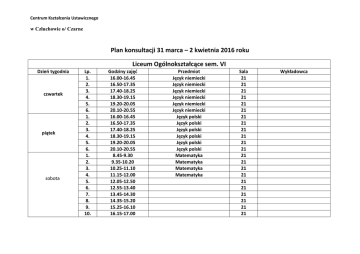 Plan konsultacji 31 marca – 2 kwietnia 2016 roku Liceum