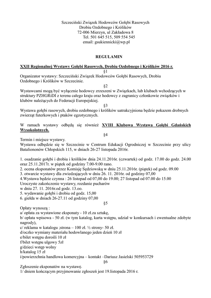 regulamin 2016 - Szczeciński Związek Hodowców Gołębi Rasowych