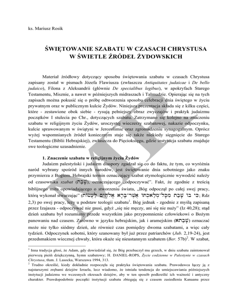 2,3) po swej pracy, leży u podstaw teologii szabatu1. Bóg jednak - zgodnie z myślą zapisaną