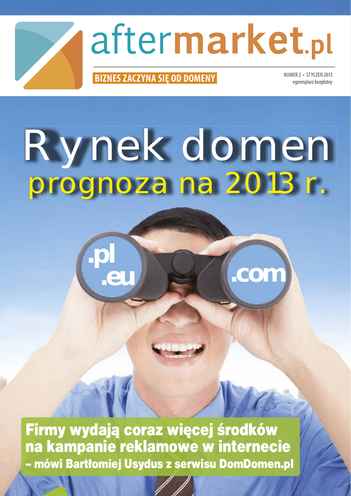 BIZNES ZACZYNA SIĘ OD DOMENY NUMER 2 • STYCZEŃ 2013 egzemplarz bezpłatny Rynek domen prognoza na 2013 r. .pl .eu .com Firmy wydają coraz więcej środków na kampanie reklamowe w internecie – mówi Bartłomiej Usydus z serwisu DomDomen.pl .CO.PL DOMENY .CO.PL DLA BIZNESU Tylko w twojanazwa.co.pl Rejestracja – 20 zł PRZEDŁUŻENIE – 20 zł Reaktywacja – 20 zł Cesja – darmowa Transfer – darmowy Domeny .pl* NAJWIĘKSZE SPRZEDAŻE W 2012 R. l.pl 85 000 zł lampa.pl 50 200 zł showup.pl 49 000 zł reisen.pl 47 800 zł rowerki.pl 46 000 zł klik.pl 43 500 zł lexis.pl 43 000 zł ruletka.pl 38 200 zł cb.pl 22 000 zł misio.pl 19 000 zł Domeny ogółem* *Zestawienie dotyczy jedynie ujawnionych transakcji Źródło: cenydomen.pl, Aftermarket.pl investing.com 2 450 000 $ personalloans.com 1 000 000 $ silver.com 875 000 $ freewebsite.com 500 000 $ jackpot.com 500 000 $ webhosting.co.uk 500 000 $ giftbasket.com 350 000 $ bj.com 325 000 $ OD REDAKCJI Za nami okres noworocznych refleksji i postanowień, przed nami – kolejne okazje do poszukiwania nowych wizji biznesowych i inicjowania nowych projektów. Jeśli będą to projekty internetowe, to oczywiście nie mogą się obyć bez odpowiedniego adresu. Ciekawych nazw – do wykorzystania pod własne przedsięwzięcia lub w charakterze inwestycji – jest u nas pod dostatkiem. Znajdą je Państwo na stronach 17–22. Polecamy również zapoznać się z naszymi prognozami dla rynku domen na bieżący rok. Wiele wskazuje na to, że rok 2013 będzie przełomowy dla branży adresowej. Pojawią się setki nowych końcówek domenowych (o ile nie dojdzie do opóźnień w „harmonogramie” ICANN...). Czy internauci w naszym kraju zaakceptują nowe rozszerzenia, czy pozostaną wierni końcówce .pl? Jak ta rewolucja w tworzeniu nowych adresów przełoży się na wartość istniejących domen? Staramy się odpowiedzieć na te pytania, ale jesteśmy też ciekawi Państwa opinii. Dlatego po lekturze najnowszego numeru Aftermarket.pl zapraszamy do dyskusji na naszym fanpage’u: www.facebook.com/aftermarketpl. Michał Pleban vi.com 325 000 $ 60.com 310 000 $ *Zestawienie dotyczy jedynie ujawnionych transakcji Źródło: dnjournal.com REDAKTOR NACZELNY: Michał Pleban REDAKTOR PROWADZĄCY: Przemysław Ćwik GRAFIKA: Anna Grzelak WYDAWCA: Michał Pleban ul. Żółkiewskiego 9/3 05-820 Piastów www.facebook.com/aftermarketpl KONTAKT: tel. (+48) 603 410 410 e-mail: [email protected] NAKŁAD: 3000 egz. DYSTRYBUCJA: bezpłatna, wysyłkowa 33 W SIECI 100 milionów na domeny Startup Donuts, będący rejestrem nowych rozszerzeń, znalazł się na liście przedsięwzięć, którym udało się pozyskać najwięcej kapitału inwestycyjnego w 2012 r. Donuts znalazł się na dziesiątym miejscu w zestawieniu przygotowanym przez serwis venturebeat.com z „wynikiem” 100 milionów dolarów. Spółka złożyła wnioski o przyznanie prawa do obsługi 300 nowych rozszerzeń ze szczególnym uwzględnieniem nazw generycznych i kategorii. Jak donosi „Wall Street Journal”, Donuts nie wnioskował o końcówki geograficzne ani trademarki. Firma zamierza działać na rynku B2B i udostępniać swoje usługi rejestratorom komercyjnym, takim jak GoDaddy. Głównym inwestorem w przedsięwzięciu jest fundusz Austin Ventures. Będzie drożej Szykują się podwyżki. Od 1 lipca wzrosną stawki za rejestrację domen .org i .net. Public Interest Registry, podmiot obsługujący rejestr .org, zapowiedział podwyżkę cen dla registrarów za rejestrację nazw w tym rozszerzeniu do 8,25 dolara, czyli o 0,55 dolara. W efekcie za adres z końcówką przeznaczoną dla organizacji trzeba będzie zapłacić więcej niż za rejestrację nazwy w połączeniu z .com. Z 5,11 do 5,62 dolara wzrostną natomiast ceny hurtowe domen .net. Zarządzający tą końcówkę rejestr Verisign na mocy umowy z ICANN może co roku podnosić stawki o 10 proc. – i skwapliwie z tego prawa korzysta. Na szczęście w grudniu zatwierdzono nowe zapisy dotyczące domen .com – obsługiwanych również przez Verisign – zgodnie z którymi aktualna cena ich rejestracji, wynosząca 7,85 dolara, ma obowiązywać przez najbliższe sześć lat. 4 Sporne domeny W 2012 r. do Światowej Organizacji Własności Intelektualnej (WIPO) wpłynęła rekordowa ilość wniosków o wszczęcie postępowania UDRP, dotyczącego spornych domen. Uniform Dispute Resolution Policy to proces rozstrzygania sporów domenowych zgodnie ze standardem przyjętym przez ICANN. Umożliwia on właścicielom zarejestrowanych znaków towarowych przejmowanie domen internetowych bez konieczności wchodzenia na ścieżkę sądową. WIPO jest jedną z czterech instytucji na świecie uprawnionych do postępowania w ramach UDRP (najbliższą jest Czeski Sąd Arbitrażowy ds. Sporów Internetowych). W minionym roku do organizacji wpłynęło 2879 spraw, podczas gdy rok wcześniej – 2764. W sumie wnioski dotyczyły 5081 nazw. Wzrost liczby postępowań nie musi być jednak efektem nasilenia się zjawiska cybersquattingu – przyczyn, które każą poddać w wątpliwość taką zależność, jest kilka. Po pierwsze, wiele skarg oddalanych jest z powodu wymogów formalnych. Po drugie, wnioski niekoniecznie wynikają ze wzmożonej aktywności cybersquaterskiej, mogą bowiem być efektem zmian w polityce ochrony wizerunku poszczególnych firm. Po trzecie, pojedyncze zgłoszenia mogą dotyczyć wielu nazw. Po czwarte, UDRP jest ostatecznym narzędziem dla większości właścicieli znaków towarowych, którzy zazwyczaj rozwiązują sprawę bez wchodzenia na drogę prawną. Ponadto, uwzględniając przyrost liczby zarejestrowanych nazw, ilość sporów w ujęciu proporcjonalnym maleje. Nieobyczajne końcówki Niektóre nowe domeny budzą wiele kontrowersji – głównie obyczajowych i etycznych. Jednak ICANN wykazuje się liberalnym podejściem do wniosków o tego typu końcówki. Domeny w rodzaju .sex, .gay czy .wtf wywołują sprzeciw niektóryc