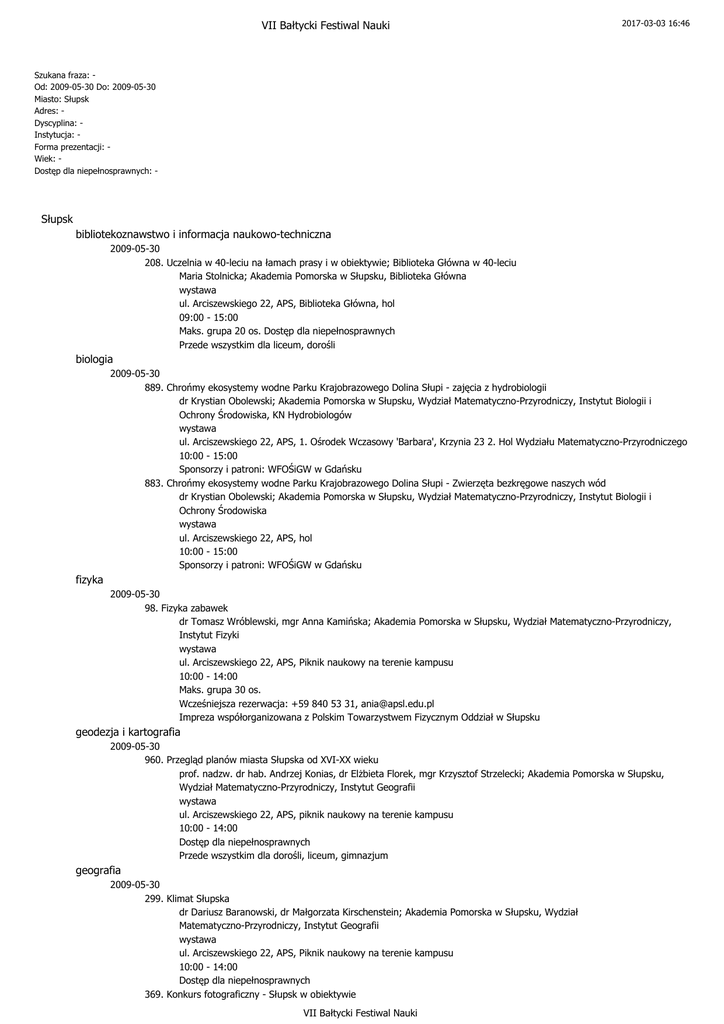 30 maja (sobota) - Bałtycki Festiwal Nauki
