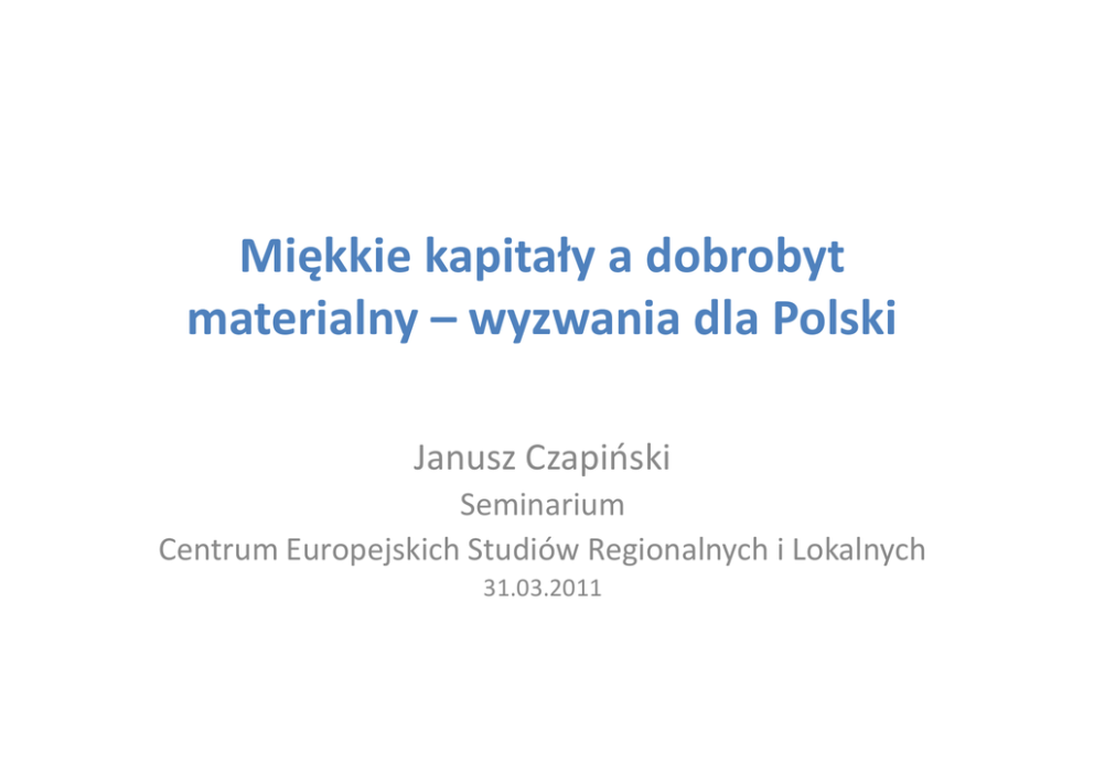 Miękkie kapitały a dobrobyt materialny – wyzwania dla Polski