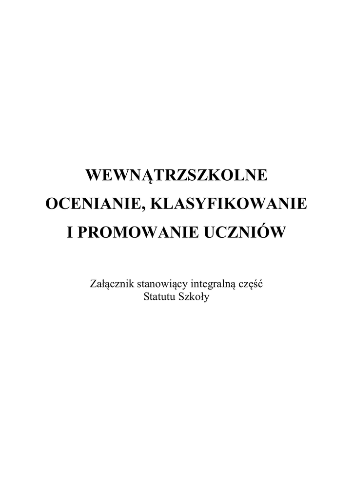 wewnątrzszkolne ocenianie, klasyfikowanie i promowanie uczniów