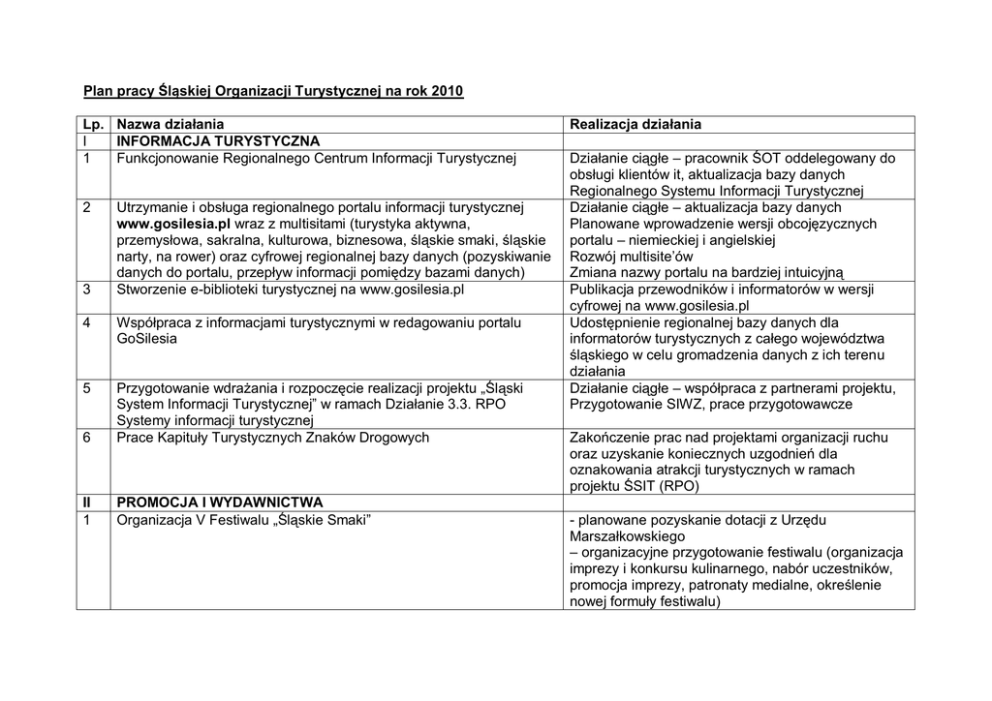 Plan Pracy ŚOT na 2010 r. - Śląska Organizacja Turystyczna