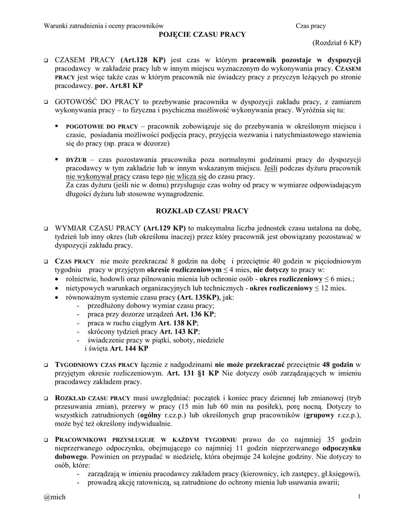 @mich POJĘCIE CZASU PRACY (Rozdział 6 KP) CZASEM PRACY