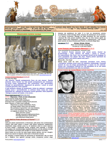 BÓG WYWYŻSZYŁ GO NAD WSZYSTKO […] ABY NA IMIĘ JEZUSA ZGIĘŁO SIĘ KAŻDE KOLANO […]” „ NR XXXIX/2011 (493) GAZETKA PARAFII ŚW. ZYGMUNTA W SŁOMCZYNIE 25 WRZEŚNIA 2011 Zmartwychwstanie 2842 Jezusa otacza chwałą imię Boga ZbawicielaPor. J 12, 28, ponieważ odtąd właśnie imię Jezus ukazuje w pełni najwyższą moc imienia, które jest „ponad wszelkie imię”Flp 2, 9. Złe duchy boją się Jego imieniaPor. Dz 16, 16-18; 19, 13-16 i w Jego 2614 imię uczniowie dokonują cudów Por. Mk 16, 17, ponieważ Ojciec udzieli im wszystkiego, o co Go poproszą w imię JezusaPor. J 15, 16. [KKK, 434] DWUDZIESTA SZÓSTA ZWYKŁA stawszy się podobnym do ludzi. A w tym co zewnętrzne uznany za człowieka, uniżył samego siebie, stawszy się posłusznym aż do śmierci, i to śmierci krzyżowej. Dlatego też Bóg wywyższył Go nad wszystko i darował Mu imię ponad wszelkie imię, aby na imię Jezusa zgięło się każde kolano istot niebieskich i ziemskich, i podziemnych, i aby wszelki język wyznał, że Jezus Chrystus jest Panem, ku chwale Boga Ojca. AKLAMACJAJ 10, 27 Alleluja, Alleluja, Alleluja Moje owce słuchają mojego głosu, Ja znam je, a one idą za Mną. SŁOWA EWANGELII WEDŁUG ŚWIĘTEGO MATEUSZAMt 21, 28–32 Jezus powiedział do arcykapłanów i starszych ludu: »Co myślicie? Pewien człowiek miał dwóch synów. Zwrócił się do pierwszego i rzekł: ‘Dziecko, idź dzisiaj i pracuj w winnicy’. Ten odpowiedział: ‘Idę, Panie’, lecz nie poszedł. Zwrócił się do drugiego i to samo powiedział. Ten odparł: ‘Nie chcę’. Później jednak opamiętał się i poszedł. Któryż z tych dwóch spełnił wolę ojca?«. Mówią Mu: „Ten drugi”. Wtedy Jezus rzekł do nich: »Zaprawdę powiadam wam: Celnicy i nierządnice wchodzą przed wami do królestwa niebieskiego. Przyszedł bowiem do was Jan drogą sprawiedliwości, a wyście mu nie uwierzyli. Celnicy zaś i nierządnice uwierzyli mu. Wy patrzyliście na to, ale nawet później nie opamiętaliście się, żeby mu uwierzyć«. PATRON TYGODNIA: BŁ. LUDWIK MONZA, KAPŁAN I ZAŁOŻYCIEL JEZUS I ARCYKAPŁANI: TISSOT, James Joseph Jacques (1836, Nantes – 1902, Buillon), 1886-1894, farby wodne na papierze, 18.9×26.5 cm, Brooklyn Museum, Nowy Jork; źródło: www.brooklynmuseum.org Z KSIĘGI PROROKA EZECHIELAEz 18, 25–28 To mówi Pan Bóg: »Wy mówicie: ‘sposób postępowania Pana nie jest słuszny’. Słuchaj jednakże, domu Izraela: czy mój sposób postępowania jest niesłuszny, czy raczej wasze postępowanie jest przewrotne? Jeśli sprawiedliwy odstąpił od sprawiedliwości, dopuszczał się grzechu i umarł, to umarł z powodu grzechów, które popełnił. A jeśli bezbożny odstąpi od bezbożności, której się oddawał, i postępuje według prawa i sprawiedliwości, to zachowa duszę swoją przy życiu. Zastanowił się i odstąpił od wszystkich swoich grzechów, które popełniał, i dlatego na pewno żyć będzie, a nie umrze«. PSALM RESPONSORYJNYPs 25, 4–5.6–7.8–9 REFREN: Wspomnij, o Panie, na swe miłosierdzie Daj mi poznać Twoje drogi, Panie, naucz mnie chodzić Twoimi ścieżkami. Prowadź mnie w prawdzie według Twych pouczeń, Boże i Zbawco, w Tobie mam nadzieję. Wspomnij na swoje miłosierdzie, Panie, na swoją miłość, która trwa od wieków. Nie pamiętaj mi grzechów i win mej młodości, lecz o mnie pamiętaj w swoim miłosierdziu, ze względu na dobroć Twą, Panie. Dobry jest Pan i prawy, dlatego wskazuje drogę grzesznikom. Pomaga pokornym czynić dobrze, uczy pokornych dróg swoich. Z LISTU ŚWIĘTEGO PAWŁA APOSTOŁA DO FILIPIANFlp 2, 1-11 Bracia: Jeśli jest jakieś napomnienie w Chrystusie, jeśli jakaś moc przekonująca miłości, jeśli jakiś udział w Duchu, jeśli jakieś serdeczne współczucie, dopełnijcie mojej radości przez to, że będziecie mieli te same dążenia: tę samą miłość i wspólnego ducha, pragnąc tylko jednego, a niczego nie pragnąc dla niewłaściwego współzawodnictwa ani dla próżnej chwały, lecz w pokorze oceniając jedni drugich za wyżej stojących od siebie. Niech każdy ma na oku nie tylko swoje własne sprawy, ale też i drugich. Niech was ożywia to dążenie, które było w Chrystusie Jezusie. On, istniejąc w postaci Bożej nie skorzystał ze sposobności, aby na równi być z Bogiem, lecz ogołocił samego siebie, przyjąwszy postać sługi, Portal parafialny: www.swzygmunt.knc.pl Urodził się w 1898 w Cislago, niedaleko Mediolanu, w biednej, chłopskiej rodzinie Józefa i Ludwiki. W 1914 rodzina Monza przeżyła dramat. Ojciec, spadł mianowicie z drzewa, złamał kręgosłup i doznał paraliżu… Zbiegło się to z wybuchem I wojny światowej. Najstarszy brat został powołany do wojska. Ludwik opuścił szkołę i zajął się gospodarstwem. Uczył się nocami… Ale powołanie było silne. W 1916 rozpoczął nauki w seminarium Villoresi w Mediolanie. Nie dane mu było go ukończyć. Na początku 1917 zmarł ojciec, a zaraz potem Ludwik został wcielony do wojska… Po powrocie w 1918 wznowił naukę w seminarium i w 1925 w Mediolanie przyjął z rąk kard. Tosiego święcenia kapłańskie… Został wikariuszem w kościele św. Maurycego w Vedano Olona, w pobliżu Varese. Rzucił się w wir pracy parafialnej… W 1926 został, w wyniku kilku wydarzeń: sprowokowanych przez faszystów rozruchów i bijatyki między kibicami „klubu księżowskiego” a nowego klubu wspieranego przez władze faszystowskie; wybuchu bomby pod urzędem miejskim oraz zamordowania lokalnego faszystowskiego kacyka, aresztowany przez faszystów. Oskarżono go o współudział w morderstwie… Pomimo interwencji Kurii zwolniony został dopiero po 4 miesiącach… W 1928 Ludwik trafił do sanktuarium Naszej Pani od Cudów w Saronno. Tam zgromadził wokół siebie grupę ok. 30 dzieci, która stała się zalążkiem nowego Świeckiego Instytutu Małych Apostołek Miłości, zrzeszającego konsekrowane kobiety pragnące wnosić do 