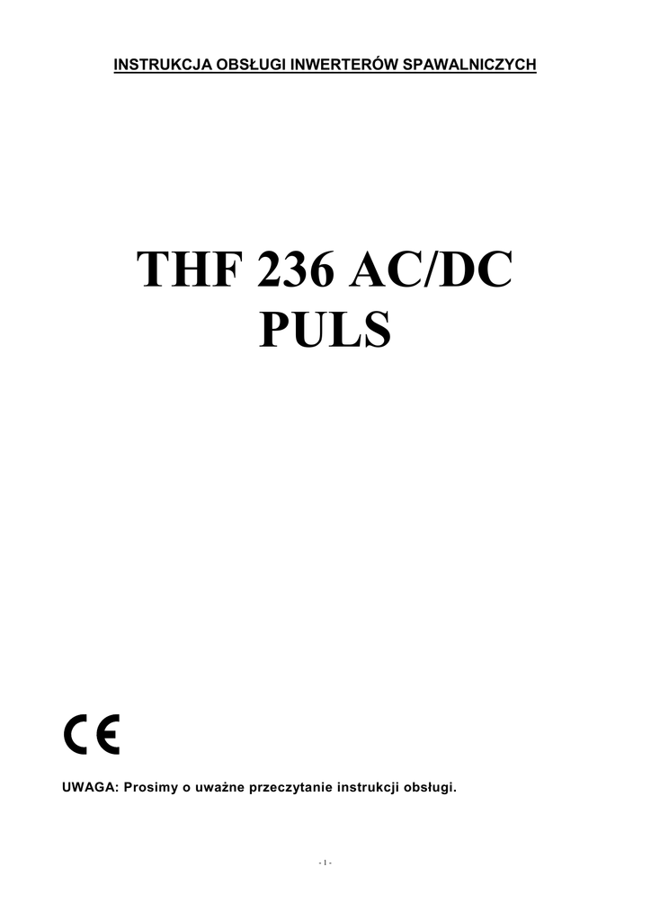 INSTRUKCJA OBSŁUGI INWERTERÓW SPAWALNICZYCH THF 236 AC/DC PULS UWAGA: Prosimy o uważne przeczytanie instrukcji obsługi. -1- Zawartość 1. UWAGI OGÓLNE ............................................................................................................................... 3 2. OGÓLNA CHARAKTERYSTYKA .................................................................................................... 3 3. DANE TECHNICZNE ......................................................................................................................... 4 4. OPIS PANELU STEROWANIA.......................................................................................................... 5 5. OPIS TRYBÓW PRZYPISANYCH DO KANAŁÓW ........................................................................ 7 6. PRZYGOTOWANIE DO PRACY ..................................................................................................... 12 6.1 PODŁĄCZENIE DO SIECI ............................................................................................................. 13 6.2 ŁĄCZENIE PRZEWODÓW SPAWALNICZYCH ......................................................................... 13 7. SPAWANIE METODĄ TIG HF ........................................................................................................ 14 8. KONSERWACJA............................................................................................................................... 15 9. PRZYGOTOWANIE KRAWĘDZI PRZED SPAWANIEM ............................................................. 16 10. ZAKŁÓCENIA W PRACY SPAWARKI ........................................................................................ 18 11. BEZPIECZEŃSTWO UŻYTKOWANIA ........................................................................................ 18 -2- 1. UWAGI OGÓLNE Uruchomienia, instalacji i eksploatacji inwertorów spawalniczych, można dokonać tylko po dokładnym zapoznaniu się z niniejszą instrukcją obsługi. Nieprzestrzeganie zaleceń zawartych w tej instrukcji może narazić użytkownika na poważne obrażenia ciała, śmierć lub uszkodzenia samego urządzenia. Nie można dopuszczać dzieci w pobliże miejsca pracy urządzenia. Osoby z wszczepionym rozrusznikiem serca zanim podejmą pracę z tym urządzeniem, powinny skonsultować się ze swoim lekarzem. Obsługa serwisowa i naprawy tych urządzeń mogą być prowadzone przez wykwalifikowany personel, z zachowaniem warunków bezpieczeństwa pracy obowiązujących dla urządzeń elektrycznych. Przeróbki we własnym zakresie mogą spowodować zmianę cech użytkowych urządzeń lub pogorszenie parametrów spawalniczych. Wszelkie przeróbki urządzeń, we własnym zakresie, powodują nie tylko utratę gwarancji, ale mogą być przyczyną pogorszenia się warunków bezpieczeństwa użytkowania i narażenia użytkownika na niebezpieczeństwo porażenia prądem. Niewłaściwe warunki pracy mogą spowodować uszkodzenia urządzenia, a jego niewłaściwa obsługa, powoduje utratę gwarancji. UWAGA: Urządzenie oparte na podzespołach elektronicznych. Szlifowanie i cięcie metali itp. w pobliżu spawarki może powodować zanieczyszczenie opiłkami wnętrza urządzenia, doprowadzając tym samym do jego uszkodzenia. Wyżej wymienione uszkodzenie nie podlega naprawie gwarancyjnej! W przypadku konieczności pracy w takim środowisku, należy dokonywać czyszczenia urządzenia przez przedmuchanie wnętrza spawarki sprężonym powietrzem. INFORMACJE DOTYCZĄCE USUWANIA ZUŻYTEGO SPRZĘTU ELEKTRYCZNEGO I ELEKTRONICZNEGO Powyższy znak umieszczony na urządzeniu informuje, że jest to sprzęt elektryczny lub elektroniczny, którego po zużyciu nie wolno umieszczać z innymi odpadami. Zużyty sprzęt elektryczny i elektroniczny zawiera substancje szkodliwe dla środowiska naturalnego. Nie wolno takiego sprzętu składować na wysypiskach śmieci, musi zostać on poddany recyklingowi. Informacje na temat systemu zbiórki zużytego sprzętu elektrycznego i elektronicznego można uzyskać w punkcie sprzedaży urządzeń, oraz u producenta lub importera. Zakaz umieszczania wraz z innymi odpadami zużytego sprzętu elektrycznego i elektronicznego narzuca na użytkownika dyrektywa europejska 2007/96/WE. 2. OGÓLNA CHARAKTERYSTYKA Urządzenie inwerterowe THF 236 AC/DC PULS zostało skonstruowane z myślą o najbardziej wymagających profesjonalistach. Oparte jest na najnowszej, najbardziej zaawansowanej technologii. Urządzenie wyposażone jest w „miękki” przejrzysty panel umożliwiający ustawienie wszystkich niezbędnych parametrów spawalniczych. THF 236 AC/DC PULS zapewnia doskonałą wydajność w spawaniu aluminium i jego stopów, stali węglowych, stali nierdzewnych, tytanu oraz innych spawalnych metali i stopów. -3- 3. DANE TECHNICZNE Model THF 236 AC/DC PULS Parametry Zasilanie 230[V] , 50[Hz] Napięcie biegu jałowego [V] 56 Zabezpieczenie [A] 20, klasa C Pobór mocy [kVA] 4,6 Stopień ochrony IP23 27 Waga [kg] TIG AC Zakres regulacji prądu spawania [A] Sprawność [A] / [%] Zakres regulacji czasu narastania i opadania prądu [s] Wypływu gazu przed spawaniem [s] Wypływu gazu po spawaniu [s] Prąd startu [A] Prąd szczytu [A] Prąd bazy [A] Prąd końca [A] Częstotliwość pulsu [Hz] Puls – Stosunek prądów, czas trwania prądu szczytu i bazy [%] AC balans - Stosunek czasu trwania dodatniej i ujemnej połówki [%] AC - częstotliwość [Hz] Spawanie punktowe [s] Prąd gorącego startu [A] Czas gorącego startu [s] Łuk forsujący [A] Wymiary urządzenia [mm] MMA DC 20 ÷ 200 10 ÷ 200 200 / 60 AC DC 20 ÷ 160 10 ÷ 160 160 / 60 0 ÷ 60 0 ÷ 15 2.0 ÷ 20 20 ÷ 200 20 ÷ 205 30 ÷ 205 20 ÷ 200 0.5 ÷ 5.0 10 ÷ 200 10 ÷ 205 10 ÷ 205 10 ÷ 200 0.5 ÷ 200 10 ÷ 90 10 ÷ 60 20 ÷ 70 0 ÷ 8.9 20 ÷ 200 10 ÷ 200 0.01 ÷ 1.00 0 ÷ 100 570×350×420 -4- 4. OPIS PANELU STEROWANIA Włącznik zasilania. Panel włączania zdalnego sterowania. Zdalne sterowanie nożne stanowi wy
