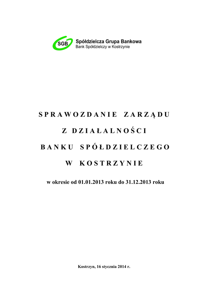 Sprawozdanie Zarządu - Bank Spółdzielczy w Kostrzynie
