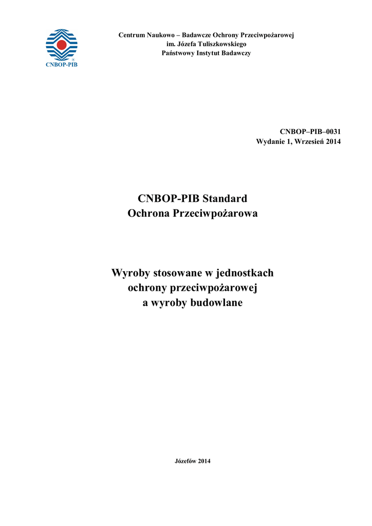 CNBOP-PIB Standard Ochrona Przeciwpożarowa Wyroby