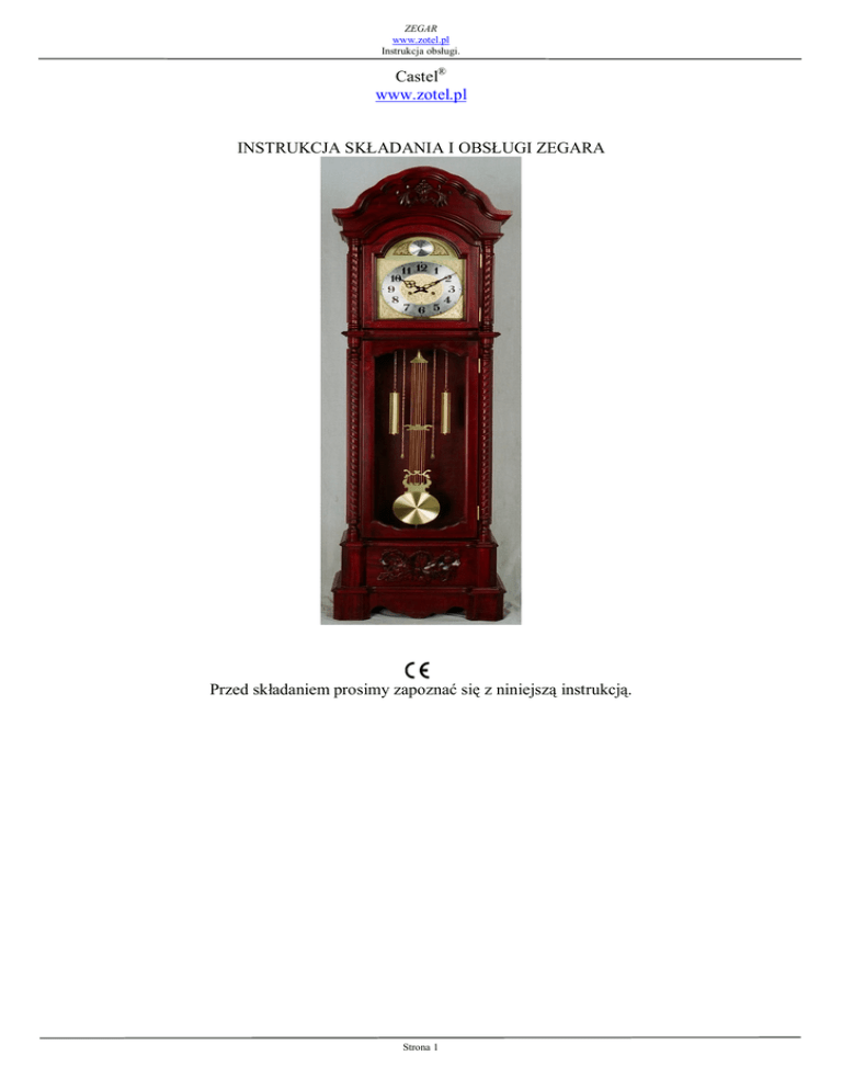 Castel www.zotel.pl INSTRUKCJA SKŁADANIA I OBSŁUGI ZEGARA