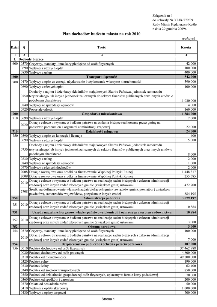 1.Załącznik nr 1 uchwały 2010 Excel - Urząd Miasta Kędzierzyn