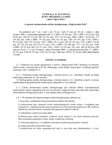 UCHWAŁA Nr XCI/1597/10 RADY MIEJSKIEJ w ŁODZI z dnia 7
