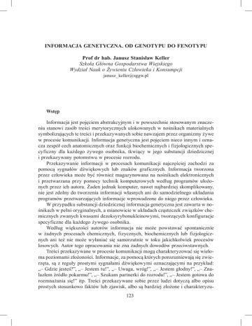 INFORMACJA GENETYCZNA. OD GENOTYPU DO FENOTYPU Prof