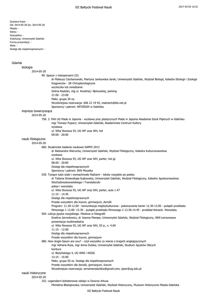 Gdańsk biologia impreza towarzysząca nauki filologiczne nauki