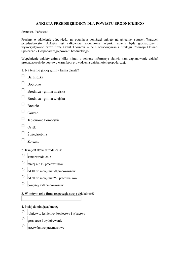 ANKIETA PRZEDSIĘBIORCY DLA POWIATU BRODNICKIEGO 1