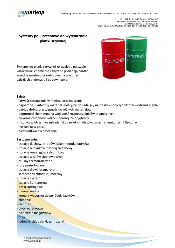 Systemy poliuretanowe do wytwarzania pianki sztywnej