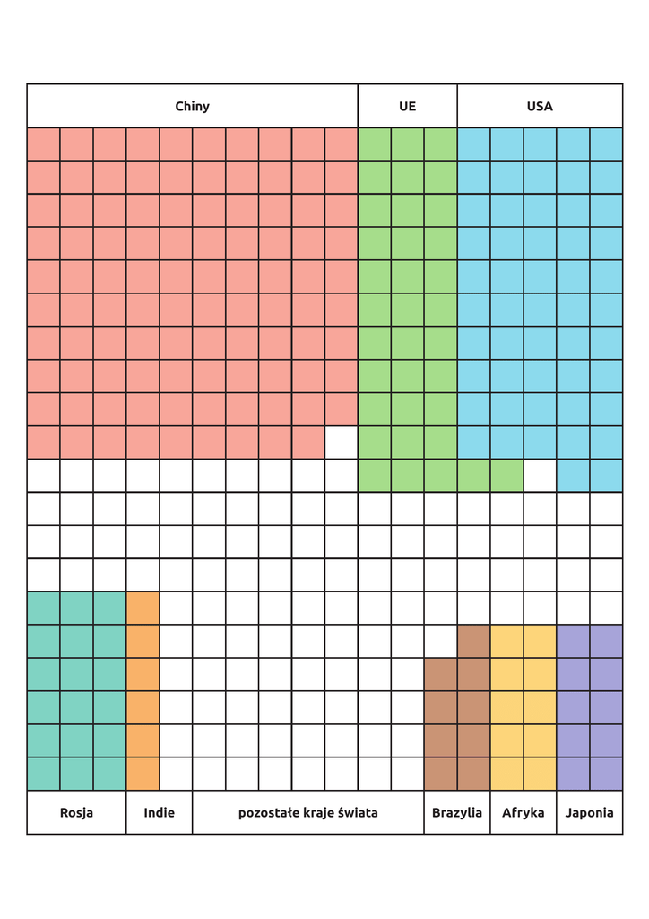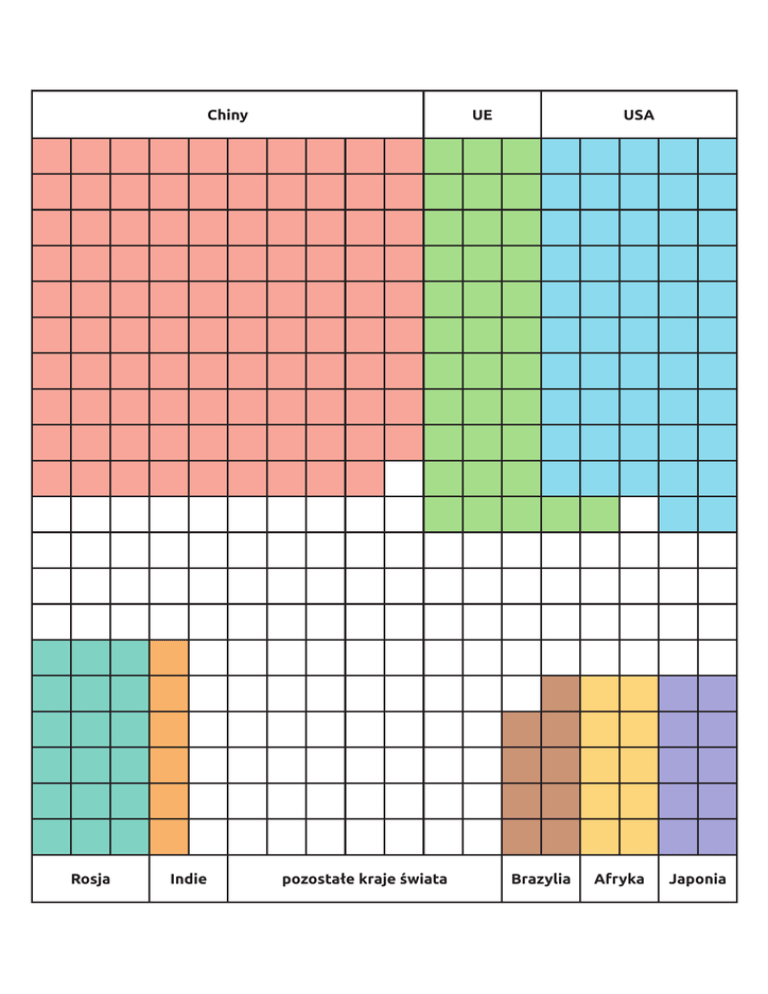 Chiny Rosja Indie UE pozostałe kraje świata USA Brazylia Afryka Japonia