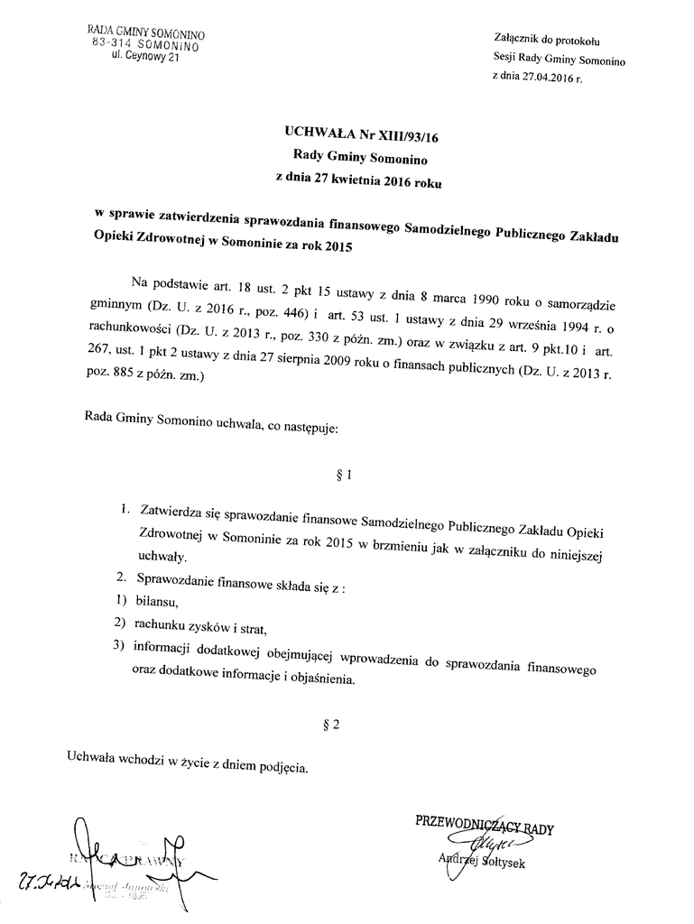 HADAGMlt`rf SOMONINO Rady Gminy Somonino z dnia 27 kwietnia