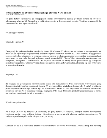 Wyniki testów na obecnoÅłÄ⁄ toksycznego chromu VI w butach â•fi