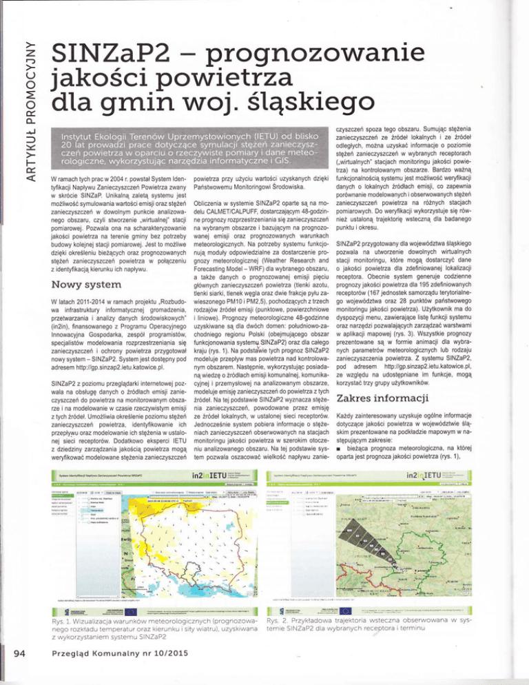 SINZaP2 - prognozowanie jakości powietrza dla gmin województwa