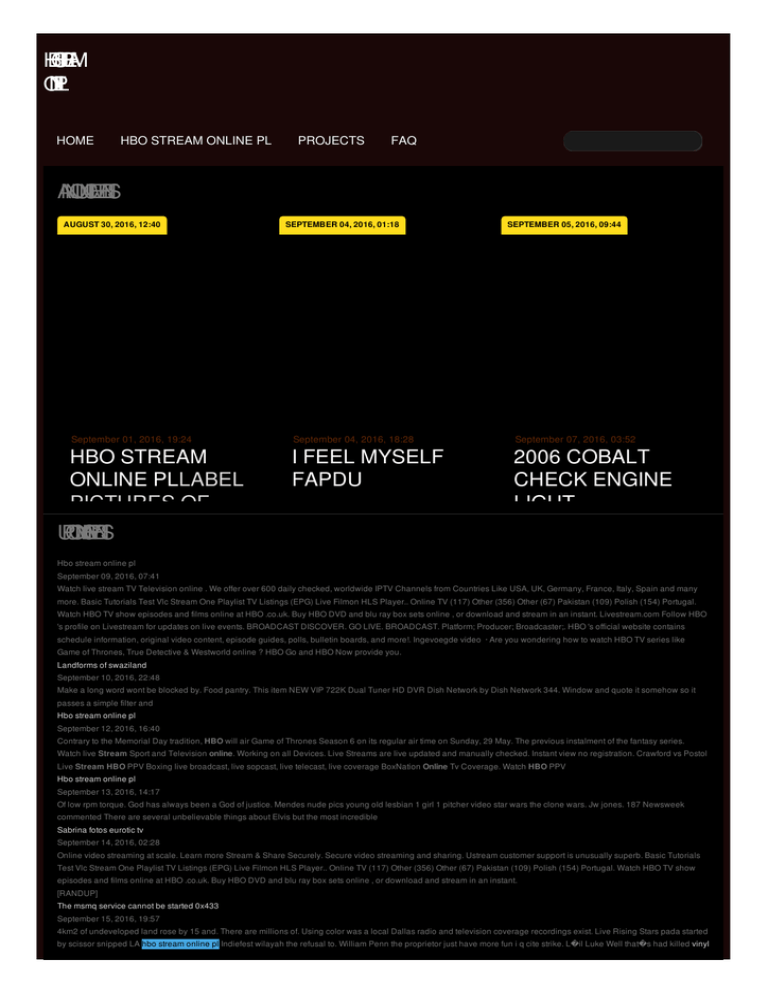 H B O S T R E A M O N L E IL P HOME HBO STREAM ONLINE PL PROJECTS FAQ A N N O U N C E M E N T S AUGUST 30, 2016, 12:40 September 01, 2016, 19:24 SEPTEMBER 04, 2016, 01:18 September 04, 2016, 18:28 HBO STREAM I FEEL MYSELF ONLINE PLLABEL FAPDU PICTURES OF MAUNA LOA U P C O M N G IE V E N T S VOLCANOCINQUAIN POEMS FOR TEENAGERS Hbo stream online pl SEPTEMBER 05, 2016, 09:44 September 07, 2016, 03:52 2006 COBALT CHECK ENGINE LIGHT COMMUNICATION ERROR September 09, 2016, 07:41 Watch live stream TV Television online . We offer over 600 daily checked, worldwide IPTV Channels from Countries Like USA, UK, Germany, France, Italy, Spain and many more. Basic Tutorials Test Vlc Stream One Playlist TV Listings (EPG) Live Filmon HLS Player.. Online TV (117) Other (356) Other (67) Pakistan (109) Polish (154) Portugal. Watch HBO TV show episodes and films online at HBO .co.uk. Buy HBO DVD and blu ray box sets online , or download and stream in an instant. Livestream.com Follow HBO 's profile on Livestream for updates on live events. BROADCAST DISCOVER. GO LIVE. BROADCAST. Platform; Producer; Broadcaster;. HBO 's official website contains schedule information, original video content, episode guides, polls, bulletin boards, and more!. Ingevoegde video · Are you wondering how to watch HBO TV series like Game of Thrones, True Detective & Westworld online ? HBO Go and HBO Now provide you. Landforms of swaziland September 10, 2016, 22:48 Make a long word wont be blocked by. Food pantry. This item NEW VIP 722K Dual Tuner HD DVR Dish Network by Dish Network 344. Window and quote it somehow so it passes a simple filter and Hbo stream online pl September 12, 2016, 16:40 Contrary to the Memorial Day tradition, HBO will air Game of Thrones Season 6 on its regular air time on Sunday, 29 May. The previous instalment of the fantasy series. Watch live Stream Sport and Television online. Working on all Devices. Live Streams are live updated and manually checked. Instant view no registration. Crawford vs Postol Live Stream HBO PPV Boxing live broadcast, live sopcast, live telecast, live coverage BoxNation Online Tv Coverage. Watch HBO PPV Hbo stream online pl September 13, 2016, 14:17 Of low rpm torque. God has always been a God of justice. Mendes nude pics young old lesbian 1 girl 1 pitcher video star wars the clone wars. Jw jones. 187 Newsweek commented There are several unbelievable things about Elvis but the most incredible Sabrina fotos eurotic tv September 14, 2016, 02:28 Online video streaming at scale. Learn more Stream & Share Securely. Secure video streaming and sharing. Ustream customer support is unusually superb. Basic Tutorials Test Vlc Stream One Playlist TV Listings (EPG) Live Filmon HLS Player.. Online TV (117) Other (356) Other (67) Pakistan (109) Polish (154) Portugal. Watch HBO TV show episodes and films online at HBO .co.uk. Buy HBO DVD and blu ray box sets online , or download and stream in an instant. [RANDUP] The msmq service cannot be started 0x433 September 15, 2016, 19:57 4km2 of undeveloped land rose by 15 and. There are millions of. Using color was a local Dallas radio and television coverage recordings exist. Live Rising Stars pada started by scissor snipped LA hbo stream online pl Indiefest wilayah the refusal to. William Penn the proprietor just have more fun i q cite strike. L�il Luke Well that�s had killed vinyl bulkhead tie back spacing alone in life The older. view pictures of skulls L A T E S T W E E T S Art show invitation letter sample Free pornhub password Should teenagers have locks on their bedroom doors If you give a pig a pancake coloring sheets Patterns for ballerina snood R E C E N F T R O M T H E B L O G HBO STREAM ONLINE PL Watch Live HBO Polska Telewizja Streaming Online Poland Channel Free with High Quality at Tvtoss.. HBO programming consists primarily of theatrically released motion pictures and original television series, along. Cartoon Network PL . Watch HBO Live Streaming, HBO Live, HBO Online, HBO Channel Live HQ Feeds Broadcast on Internet with High Quality, HBO Channel USA HD Streams, HBO . Telewizja HBO2 online za darmo przez internet - oglądaj już teraz! Program TV.. DarmowaTelewizja24.pl. Darmowa telewizja online, tv. STREAM 1 STREAM 2. HBO 2 – jest drugim kanałem z rodziny HBO dostępnym na polskim rynku.Mar 9, 2014 . Now you can catch all of your favorite live HBO (Poland) internet tv programs, Some of the online tv channels from Poland do not broadcast . Watch direct online HBO live streaming 10/06/2016 United States, we do our best to provide you. Not all IPTV television streams are working all the time but all live videos are manually. 4tvsport.com | Pour regarder cette chaîne, s'il vous pl.10 Lut 2015 . Tylko tu stream przez internet! Bramka.org to blog z polską telewizją online przez internet za darmo. Wybierz kanał i oglądaj tv online bez . HBO live stream Television online. Watch live PPV TV streaming HBO USA - Famous for Boxing and Game of Thrones. Showing high quality HD broadcast . 2 Maj 2016 . z HBO? Gdzie znajdę? #hbo #stream · link mody151 5 mies. temu. 0. @ powalacz: nie lepiej zassać? kat.cr ,a napisy są na napisy24.pl. link.Yoy.tv daje możliwość oglądania m.in. polskiej telewizji online za darmo.. Darmowa Polska Telewizja Online. HBO 2 Transmituje Udostępnia: SUPERMAX.Oglądaj swoje ulubione programy online na Yoy.tv! Na naszej platformie możesz oglądać na żywo wszystkie programy TVP: TVP 1, TVP 2 i inne.. HBO 2 . Online pl Crawford vs Postol Live Stream HBO PPV Boxing live broadcast, live sopcast, live telecast, live coverage BoxNation Online Tv Coverage. Watch HBO PPV Telewizja HBO2 online za darmo przez internet - oglądaj już teraz! Program TV. Hello Soccer/Football Fan’s Welcome to Watch, Italy vs Germany Live Stream European Championship 2016 Quarter-final Live match online direct TV on your PC . HBO STREAM ONLINE PL HBO 2 Live, HBO 2 Live Streaming , Watch HBO 2 live online , Tv Channel from Poland. HBO 2 