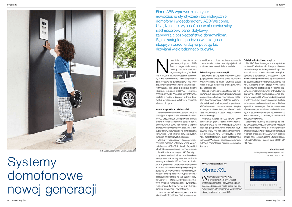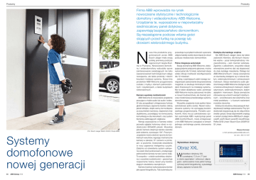 Produkty Produkty Firma ABB wprowadza na rynek nowoczesne stylistycznie i technologicznie domofony i wideodomofony ABB-Welcome. Urządzenia te, wyposażone w niepowtarzalny siedmiocalowy panel dotykowy, zapewniają bezpieczeństwo domownikom. Są niezastąpione podczas witania gości stojących przed furtką na posesję lub drzwiami wielorodzinnego budynku. N owa linia produktów przygotowanych przez ABB Busch-Jaeger miała swoją polską premierę podczas tegorocznych targów Budma w Poznaniu. Nowoczesne domofony i wideodomofony wzbudziły spore zainteresowanie zwiedzających nie tylko zaawansowaniem technologicznym całego rozwiązania, ale także prostotą i niskimi kosztami instalacji systemu. Nowa linia produktów ABB-Welcome przygotowana została z myślą o domach jednorodzinnych i rezydencjach, a także budynkach wielorodzinnych. (Fot. Busch-Jaeger Elektro GmbH, Grupa ABB) Systemy domofonowe nowej generacji 34 ABB Dzisiaj 1|12 Kamera wysokiej rozdzielczości ABB-Welcome to nowoczesne urządzenia pracujące w trybie audio lub audio i wideo. W obu przypadkach zintegrowana funkcja głośnomówiąca zapewnia bardzo dobrą jakość dźwięku, dzięki czemu nie ma kłopotu ze zrozumieniem rozmówcy. Zapewnia to tryb dupleksowy, pozwalający na równoczesną komunikację w obu kierunkach, oraz system tłumienia zakłócających odgłosów. Wersja wyposażona w kamerę wideo pozwala oglądać kolorowy obraz w rozdzielczości 800x600 pikseli. Wysokiej jakości kamera obejmuje bardzo szerokie pole widzenia, wynoszące 104°. Poza tym, urządzenie można dostroić ręcznie do konkretnych warunków, regulując mechanicznie kamerę w zakresie 15° zarówno w pionie, jak i w poziomie. Doskonałe oświetlenie w nocy zapewnia inteligentny czujnik. Zależnie od oświetlenia system uaktywnia sześć diod podczerwieni, przełączając jednocześnie kamerę na tryb czarno-biały. To wszystko – a także wyświetlacz dotykowy o wysokiej rozdzielczości – gwarantuje rozpoznanie twarzy nawet przy bardzo skąpym oświetleniu zewnętrznym. Kamera może być wykorzystywana również jako aparat fotograficzny. Tryb automatyczny przewiduje na przykład możliwość wykonania zdjęcia każdej osobie dzwoniącej do drzwi podczas nieobecności domowników. Pełna integracja automatyki Stację zewnętrzną ABB-Welcome, obsługującą jedynie połączenia głosowe, można wykorzystać dla 15 lokali, natomiast stacja wideo oferuje możliwość skonfigurowania dla 12 mieszkań. Jedną z ważniejszych zalet nowego rozwiązania jest zastosowanie dwuprzewodowej magistrali, co skutkuje minimalnymi nakładami finansowymi na instalację systemu. Ma to także dodatkowy walor, ponieważ ABB-Welcome można zastosować nie tylko w nowym budownictwie, ale również podczas modernizacji przestarzałego systemu domofonowego. Wszystkie urządzenia może szybko i łatwo zainstalować jedna osoba. Nawet rozbudowane systemy nie wymagają bowiem żadnego programowania. Ponadto użytkownik, który ma już zainstalowany system automatyki ABB i wykorzystuje panel ABB-ComfortTouch, może zintegrować z nim ABB-Welcome i zarządzać w ramach jednego centralnego panelu sterowania domem. Estetyka dla każdego wnętrza Ale ABB Busch-Jaeger stara się także zadowolić klientów, dla których niezwykle ważna – poza funkcjonalnością i niezawodnością – jest również estetyka. Zgodnie z założeniem, wszystkie stacje wewnętrzne powinno dać się dopasować do stylu każdego mieszkania. Dlatego też ABB-WelcomeTouch i stacja wewnętrzna ze słuchawką dostępne są w kolorze białym, srebrnoaluminiowym i antracytowym matowym. Stacja wewnętrzna audio głośnomówiąca ABB-Welcome dostępna jest w kolorze antracytowym matowym, białym satynowym, srebrnoaluminiowym, białym alpejskim i kremowym. Stacje zewnętrzne oferowane są w dwóch wersjach stylistycznych – szczotkowana stal szlachetna oraz metal powlekany – i z licznymi wariantami modułów dzwonka. Estetyczne obudowy stacji pasują do każdej elewacji i każdego zastosowania. Przy tym doskonale dopasowują się do włączników światła i gniazd. Swoje odpowiedniki znajdują w seriach przełączników ABB Busch-Jaeger: caratR, soloR, Busch-axcentR, futureR linear, Reflex SI/SI Linear I Busch-Duro 2000R SI/ SI Linear. Więcej informacji: e-mail: [email protected], tel. kom.: 603 131 947 Wyświetlacz dotykowy Obraz XXL W yświetlacz dotykowy XXL o przekątnej 17,8 cm (7’’) jest w stanie zapamiętać i odtworzyć zdjęcia gości. Jednocześnie może pełnić funkcję cyfrowej ramki fotograficznej, wyświetlając obrazy zapisane na karcie SD. ABB Dzisiaj 1|12 35