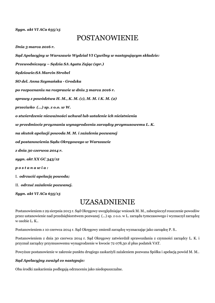 Sygn. akt VI ACa 635/15