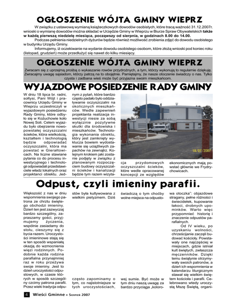 OG£OSZENIE WÓJTA GMINY WIEPRZ