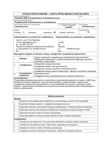 karta przedmiotu - Wydział Architektury Politechniki Poznańskiej