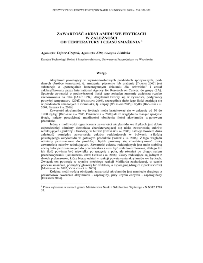 ZAWARTOŚĆ AKRYLAMIDU WE FRYTKACH W ZALEśNOŚCI OD