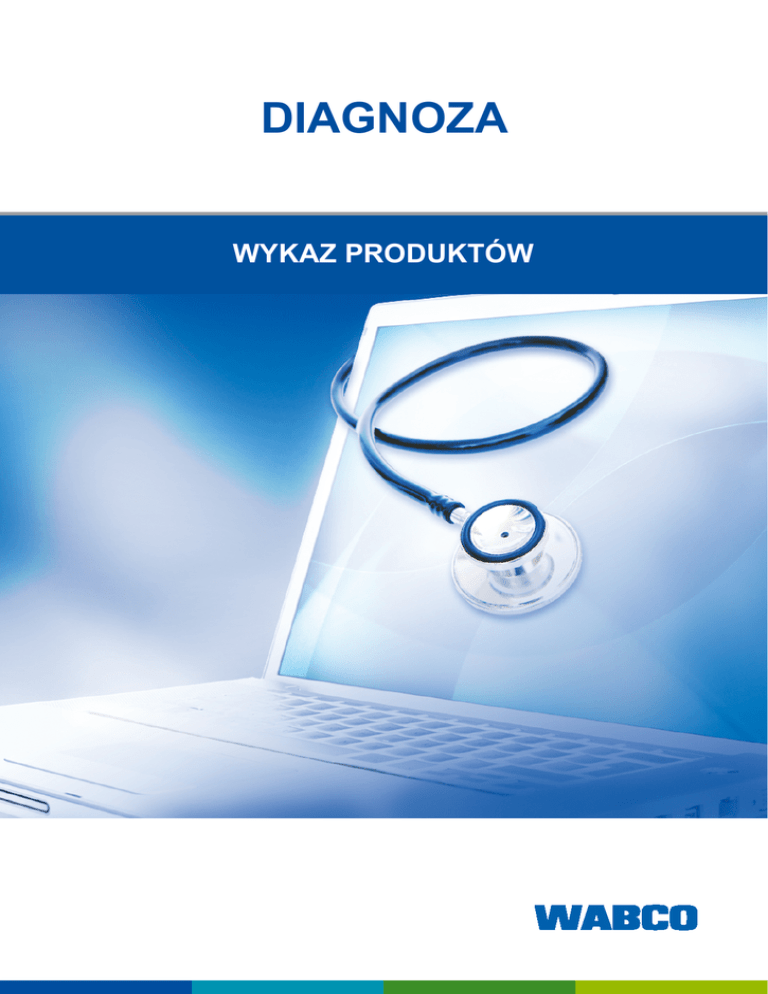 DIAGNOZA WYKAZ PRODUKTÓW DIAGNOZA WYKAZ PRODUKTÓW Wydanie 10 Niniejsza publikacja nie jest objęta regularnymi aktualizacjami. Aktualną wersję można znaleźć pod adresem http://www.wabco.info/8150900373 © 2015/2016 WABCO Europe BVBA – wszelkie prawa zastrzeżone. Zastrzegamy sobie prawo do wprowadzenia zmian. Wersja 1 / 02.2015 (pl) 815 090 037 3 Spis treści Spis treści 1 Spis skrótów...................................................................................................................................................... 4 2 Wskazówki ogólne............................................................................................................................................ 5 3Wprowadzenie................................................................................................................................................... 8 4 Diagnostyka systemowa WABCO.................................................................................................................... 8 4.1 Oprogramowanie diagnostyczne. . . . . . . . . . . . . . . . . . . . . . . . . . . . . . . . . . . . . . . . . . . . . . . . . . . . . . . 8 4.1.1 Zamawianie oprogramowania diagnostycznego........................................................................ 9 4.1.2 Przegląd oprogramowania diagnostycznego........................................................................... 10 4.1.3 Instalacja oprogramowania diagnostycznego.......................................................................... 12 4.1.4 Program SD WABCO............................................................................................................... 13 4.1.5 Moduł wyszukiwarki do oprogramowania diagnostycznego..................................................... 13 4.1.6 Newsletter diagnostyczny........................................................................................................ 14 4.1.6.1 Abonament newslettera diagnostycznego WABCO................................................ 14 4.1.7 Umowa licencyjna.................................................................................................................... 15 4.1.8 Aktywacja oprogramowania diagnostycznego......................................................................... 15 4.1.9 Wersja licencji.......................................................................................................................... 16 4.1.10 Rozszerzone uprawnienia (PIN).............................................................................................. 17 4.1.10.1 Wersja PIN.............................................................................................................. 17 4.2 5 4.2.1 PC / Laptop.............................................................................................................................. 18 4.2.2 Interfejs diagnostyczny............................................................................................................. 18 Przewód do diagnozy..................................................................................................................................... 19 5.1 Walizka z akcesoriami diagnostycznymi. . . . . . . . . . . . . . . . . . . . . . . . . . . . . . . . . . . . . . . . . . . . . . . . 19 5.2 ABS/ASR. . . . . . . . . . . . . . . . . . . . . . . . . . . . . . . . . . . . . . . . . . . . . . . . . . . . . . . . . . . . . . . . . . . . . . . . 21 5.2.1 ABS B 4-kanałowy (pojazd silnikowy)...................................................................................... 21 5.2.2 ABS/ASR C 4-kanałowy (pojazd silnikowy)............................................................................. 21 5.2.3 ABS/ASR C 6-kanałowy (pojazd silnikowy)............................................................................. 21 5.2.4 ABS/ASR D/E (pojazd silnikowy)............................................................................................. 22 5.2.5 ABS Vario C (przyczepa)......................................................................................................... 22 5.2.6 Instalacja hydrauliczna ABS..................................................................................................... 22 5.2.7 ABS VCS I (przyczepa)............................................................................................................ 23 5.2.8 ABS VCS II (przyczepa)........................................................................................................... 23 5.2.9 ATC / HVAC.............................................................................................................................. 24 5.3 CAN Viewer. . . . . . . . . . . . . . . . . . . . . . . . . . . . . . . . . . . . . . . . . . . . . . . . . . . . . . . . . . . . . . . . . . . . . . 24 5.4 EBS. . . . . . . . . . . . . . . . . . . . . . . . . . . . . . . . . . . . . . . . . . . . . . . . . . . . . . . . . . . . . . . . . . . . . . . . . . . . 25 5.5 2 Sprzęt . . . . . . . . . . . . . . . . . . . . . . . . . . . . . . . . . . . . . . . . . . . . . . . . . . . . . . . . . . . . . . . . . . . . . . . . . . 18 5.4.1 EBS EPB (Mercedes)............................................................................................................... 25 5.4.2 EBS Euro (pojazd silnikowy).................................................................................................... 25 5.4.3 TEBS (przyczepa).................................................................................................................... 26 ECAS. . . . . . . . . . . . . . . . . . . . . . . . . . . . . . . . . . . . . . . . . . . . . . . . . . . . . . . . . . . . . . . . . . . . . . . . . . . 26 5.5.1 ECAS/ESAC (pojazd silnikowy)............................................................................................... 26 5.5.2 ECAS/ESAC (Mercedes).................................................................................................