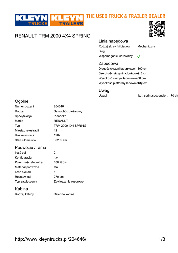 http://www.kleyntrucks.pl/204646/ 1/3 RENAULT TRM 2000 4X4