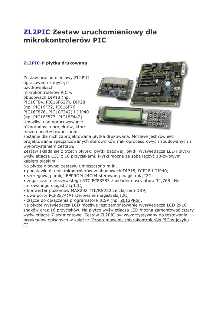 ZL2PIC Zestaw uruchomieniowy dla mikrokontrolerów PIC