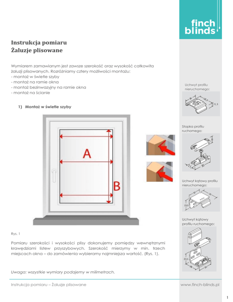 Instrukcja pomiaru Żaluzje plisowane - Finch