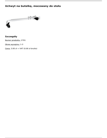 Uchwyt na butelkę, mocowany do stołu Szczegóły Numer produktu: 2701 Okres wynajmu: 1-3 Cena: 3.00 zł + VAT (0.00 zł brutto) Powered by TCPDF (www.tcpdf.org)