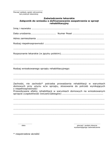 Druk zaświadczenia lekarskiego o dofinansowanie sprzętu