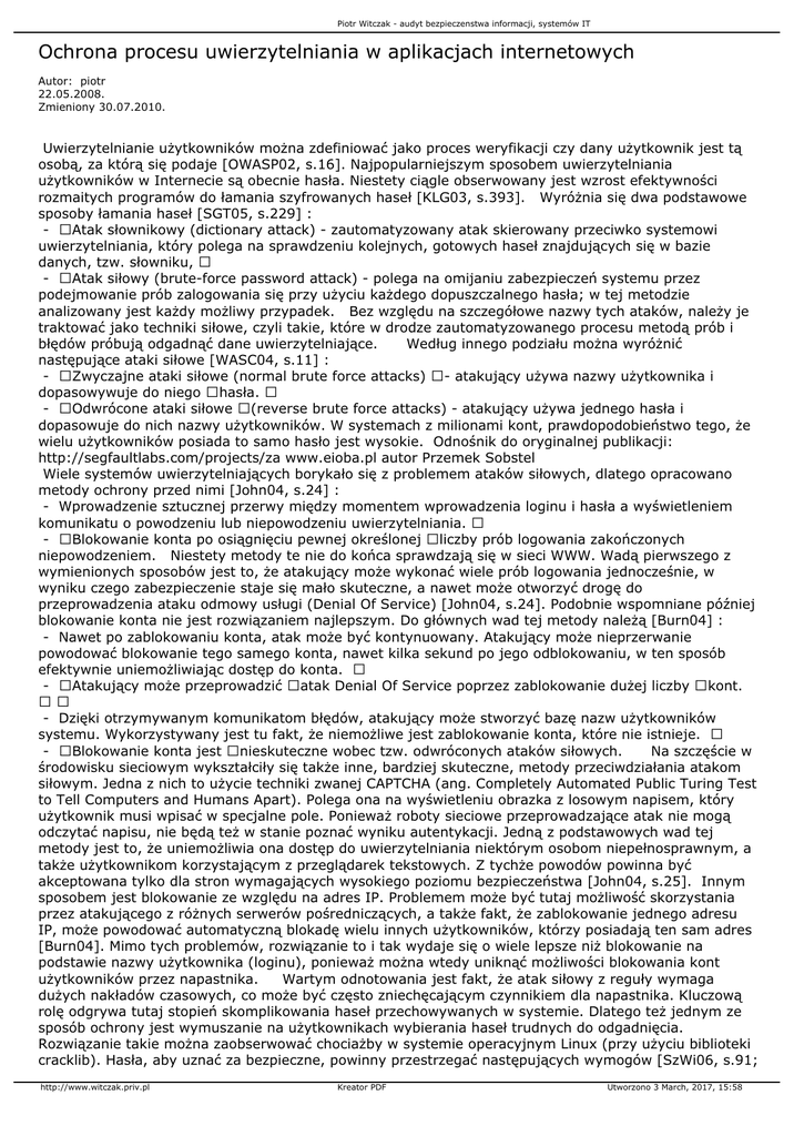 S., Gupt A.: Hack I.T. Testy bezpieczeńtwa danych, Helion 2003. [Kohl04]Kohli K.: Stealing passwords