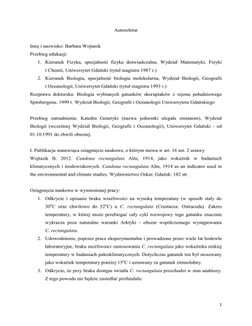 Autoreferat - Wydział Biologii i Ochrony Środowiska