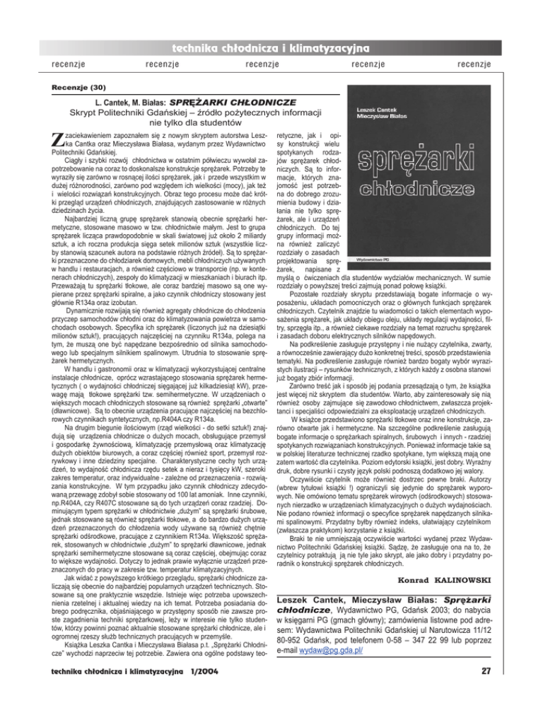 Cantek L., Białas M.: Sprężarki chłodnicze.