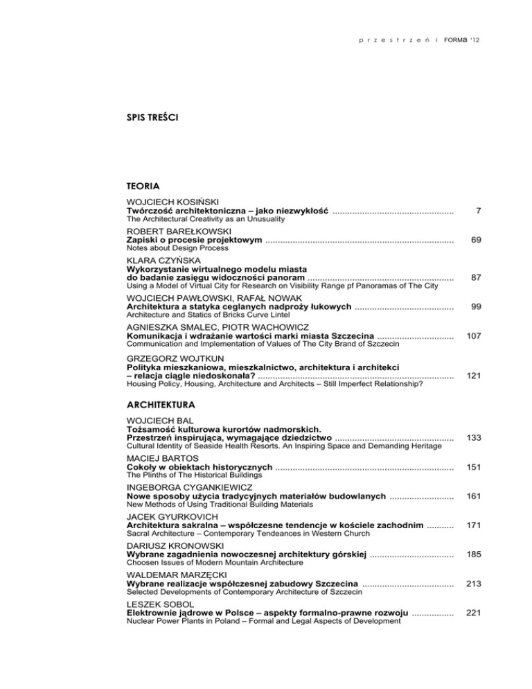 SPIS TREŚCI TEORIA ARCHITEKTURA