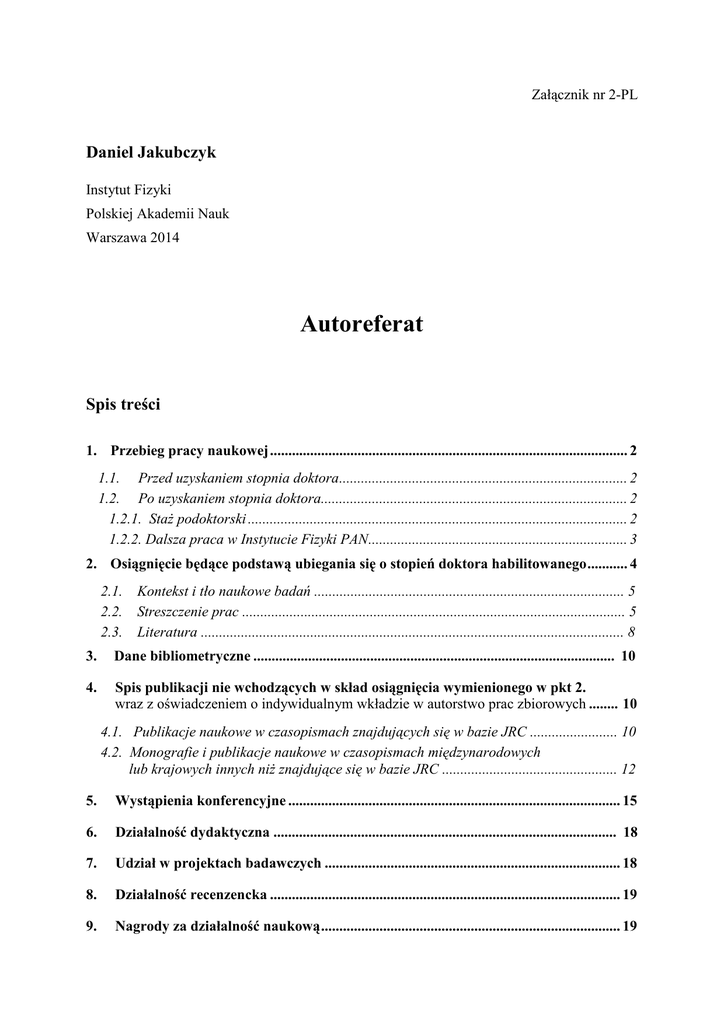 Autoreferat - Instytut Fizyki PAN