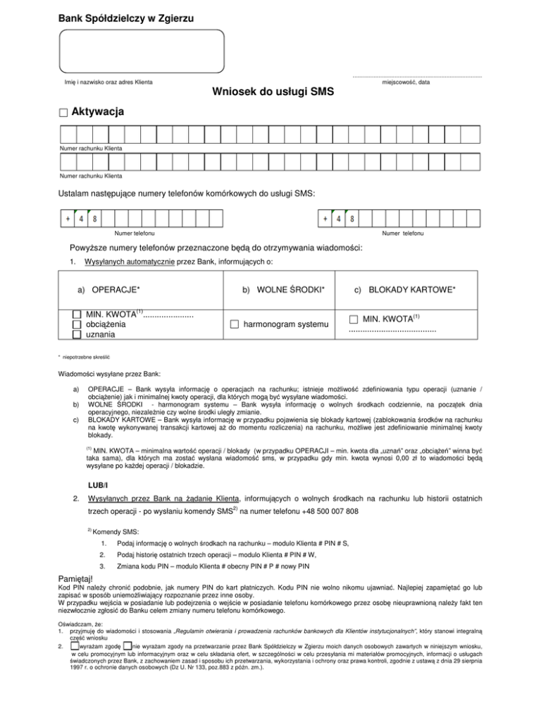 Wniosek do usługi SMS Aktywacja