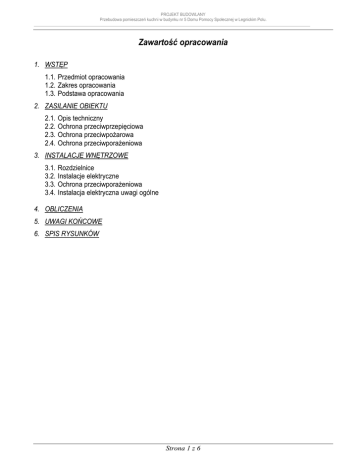 PROJEKT BUDOWLANY Przebudowa pomieszczeń kuchni w budynku nr 5 Domu Pomocy Społecznej w Legnickim Polu. Zawartość opracowania 1. WSTĘP 1.1. Przedmiot opracowania 1.2. Zakres opracowania 1.3. Podstawa opracowania 2. ZASILANIE OBIEKTU 2.1. Opis techniczny 2.2. Ochrona przeciwprzepięciowa 2.3. Ochrona przeciwpożarowa 2.4. Ochrona przeciwporażeniowa 3. INSTALACJE WNĘTRZOWE 3.1. Rozdzielnice 3.2. Instalacje elektryczne 3.3. Ochrona przeciwporażeniowa 3.4. Instalacja elektryczna uwagi ogólne 4. OBLICZENIA 5. UWAGI KOŃCOWE 6. SPIS RYSUNKÓW Strona 1 z 6 PROJEKT BUDOWLANY Przebudowa pomieszczeń kuchni w budynku nr 5 Domu Pomocy Społecznej w Legnickim Polu. 1. WSTĘP 1.1. Przedmiot opracowania Przedmiotem opracowania jest instalacja elektryczna w Domu Pomocy Społecznej w Legnickim Polu ul. Benedyktynów 4 , budynek nr 5 , 59-241 Legnickie Pole , dz. nr 9/38 obręb Legnickie Pole . Inwestorem jest Domu Pomocy Społecznej w Legnickim Polu ul. Benedyktynów 4 , 59-241 Legnickie Pole . 1.2. Zakres opracowania Niniejszy projekt obejmuje swoim zakresem : - Rozdzielnice główną dla kuchni, - instalację oświetleniową , - instalację gniazd wtykowych , - zasilania wentylacji mechanicznej z rekuperacją i klimatyzacji, 1.3. Podstawa opracowania : - część architektoniczna , - rzuty poszczególnych kondygnacji, - „Warunki techniczne wykonania i odbioru robót budowlano-montażowych” tom V – Instalacje elektryczne, - obowiązujące przepisy i normy. 2. ZASILANIE OBIEKTU 2.1. Opis techniczny Zasilanie pomieszczeń kuchni. W chwili obecnej pomieszczenia kuchni są zasilane z istniejącego przyłącza kablowego istniejącej sieci zasilającej DPS w Legnickim Polu. Rozdzielnica główna kuchni zasilana będzie z istniejącego przyłącza kablem typu YAKY 4x120 . Ze względu na zwiększoną moc zainstalowaną należy zbadać pobór mocy przez poszczególne odbiorniki i obliczyć moc maksymalną pobieraną przez projektowaną rozdzielnię . Następnie uwzględniając istniejącą sieć zasilającą DPS należy zaprojektować nowe przyłącze do zasilania kuchni . Wymiana istniejącego przyłącza stanowi odrębne opracowanie w ramach remontu sieci energetycznych DPS Legnickie Pole. Rozdzielnia główna RK. Rozdzielnica główna budynku zabudowana będzie w korytarzu , po prawej stronie , przy wejściu. Rozdzielnica zabudowana zostanie w dwóch szafach typu XL3-800IP40(8) o wymiarach 1600x1150x208 (wys.x szer.x głęb.) Legrand . Szafy należy wmurować w ścianę w miejsce istniejących rozdzielni . W szafie zostanie zabudowany wyłącznik typu DPX-630-3P 320A (Legrand), który będzie posiadać funkcję „GŁÓWNY WYŁĄCZNIK PRĄDU”. Z rozdzielnicy głównej RK zasilane będą : - wyłączniki dźwigu do transportu potraw , - instalacja oświetlenia ogólnego i bezpieczeństwa (pracująca w trybie użytkowo-awaryjnym), - instalacja oświetlenia ewakuacyjnego, PRONASCO – DOKUMENTACJE TECHNICZNE DLA BUDOWNICTWA ul. Szczytnicka 60 , 59-220 Legnica tel./fax (76) 850-61-44 , [email protected] , www.pronasco.pl PROJEKT BUDOWLANY Przebudowa pomieszczeń kuchni w budynku nr 5 Domu Pomocy Społecznej w Legnickim Polu. - instalacja gniazd wtykowych, - centralki wentylacji i klimatyzacji Łączenia przewodów w rozdzielnicy wykonywać przy pomocy złączki śrubowej jednotorowej 2,5 , 4 i 6 mm2 Viking 3 wraz z grzebieniami łączeniowymi (Legrand). 2.2. Ochrona przeciwprzepięciowa W celu ochrony instalacji elektrycznych w budynkach, odbiorników i urządzeń przed przepięciami mogącymi przenieść się z sieci elektroenergetycznej należy zabudować ograniczniki przepięć w rozdzielnicy głównej RK. Ogranicznik typu SPB-12/280/4 Moeller spełnia wymogi ochrony przed przepięciami klasy B+C zapewniając 2-gi i 3-ci stopień ochrony przeciwprzepięciowej. Ogranicznik należy zabudować za głównym wyłącznikiem prądu GWP. Do ograniczników podłączyć zworę uziemiającą i podpiąć linkę LY 16mm2 do głównej szyny wyrównawczej (PE). Ogranicznik zapewnia napięciowy poziom ochrony poniżej 1,5kV. Piorunowy prąd wyładowczy 20/40kA. Dla poprawnej pracy ogranicznika przepięć rezystancja uziemienia nie powinna być wyższa niż 10Ω. 2.3. Ochrona przeciwporażeniowa Ochrona przed dotykiem bezpośrednim (podstawowa) W rozdzielnicy głównej RK ochronę przed dotykiem bezpośrednim stanowi izolacja zastosowanych przewodów, obudowy, izolacja aparatów elektrycznych. Ochrona przed dotykiem pośrednim (dodatkowa) Ochronę przed dotykiem pośrednim kabla zasilającego i mostu szynowego w rozdzielnicy RG stanowi samoczynne wyłączenie zasilania realizowane przez : - wkładki topikowe w złączach kablowych , - wyłączniki nadmiarowo-prądowe, - wyłączniki różnicowoprądowe. Połączenia wyrównawcze Wykonanie instalacji połączeń wyrównawczych ma na celu zmniejszenie możliwości wystąpienia przypadku porażenia prądem elektrycznym poprzez ograniczenie różnicy potencjałów między częściami przewodzącymi chronionych urządzeń i częściami przewodzącymi obcymi. Połączenia wyrównawcze główne W pobliżu rozdzielni głównej , w miejscu najbardziej dogodnym , zabudować główną szynę wyrównawczą GSW w formie gotowego urządzenia spełniającego tę funkcję . Do GSW doprowadzić następujące przewody : • z uziomu otokowego budynku–linkę LgY 25, • do szyny PE rozdzielni głównej – LY 16mm2 , • do instalacji wodociągowej, centralnego ogrzewania , gazowej – LgY 6mm2. • metalowe regały i stoły -LgY 6mm2 , • metalowe obudowy urządzeń technologicznych w kuchni , • metalowe obudowy urządzeń klimatyzacji i wentylacji , • inne metalowe konstrukcje nie wymienione wyżej , nie należące do obwodu elektrycznego -LgY 6mm2 PRONASCO – DOKUMENTACJE TECHNICZNE DLA BUDOWNICTWA ul. Szczytnicka 60 , 59-220 Legnica tel./fax (76) 850-61-44 , [email protected] , www.pronasco.pl PROJEKT BUDOWLANY Przebudowa pomieszczeń kuchni w budynku nr 5 Domu Pomo