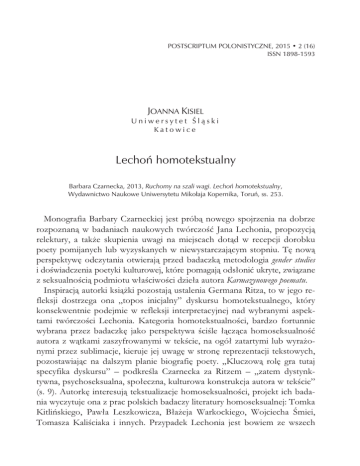 #e Lecho& nie jest tu metonimi twórczo!ci („czyta" Lechonia”), lecz postaci twórcy – jak chcia%aby autorka – jednostkow i konkretn , z intymn histori , której istotnymi sk%adnikami s erotyzm i seksualno!". Podwójna motywacja jest stale obecna w ksi #ce Czarneckiej, tropiona homotekstualno!"