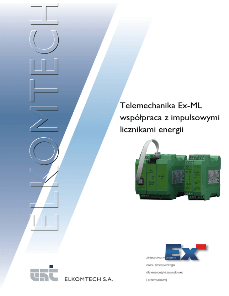 Telemechanika Ex-ML współpraca z impulsowymi licznikami energii Telemechanika Ex-ML-NLI moduł do współpracy z impulsowymi licznikami energii Przeznaczenie Koncentrator impulsów licznikowych Telemechanika Ex-ML przeznaczona jest do obsługi małych obiektów o limitowanych potrzebach w zakresie ilości wejść i wyjść. Jednocześnie umożliwia ona włączanie w system telemechaniki i zdalnego nadzoru różnych nietypowych urządzeń i usług. Zestaw do przesyłu danych z liczników impulsowych składa się z modułu Ex-ML_NLI4 - licznika impulsów generowanych przez impulsowe liczniki energii oraz sterownika Ex-ML składającego się z modułów podstawowych: - Ex-ML_NG_x moduł zapewniający łączność z jednostką nadrzędną. Warianty modułu: Moduł Ex-ML_NLI4 należy do modułów usługowych systemu ML. Pełni on funkcje licznika impulsów generowanych przez impulsowe liczniki energii. Budowa Telemechanika Ex-ML ma charakter modułowy. Pojedyncze moduły mieszczą się w typowych niewielkich obudowach firmy Phoenix Contact i łączone są ze sobą poprzez szynę DIN (moduły podstawowe) lub poprzez magistralę typu LONTM (Local Operating Network) (moduły usługowe). Łączność pomiędzy zestawem podstawowym a modułami usługowymi prowadzona jest w protokole LonTalk. - Ex-ML_NG _T Ex-ML_NG _D - Ex-ML_NG _S - - łączność poprzez terminal trunkingowy, łączność poprzez kanał dzierżawiony w protokole DNP3.0, łączność poprzez modem systemu GSM Ex-ML_NG _GPRS łączność poprzez modem GPRS Ex-ML_M2 moduł pamięci nieulotnej o pojemności 256kB), Ex-ML_PS_24, Ex-ML_PS_48, EX-ML_PS_220 przetwornice zasilające powyższe moduły. Moduł Ex-ML_NLI4 wyposażony jest w 4 izolowane wejścia sygnałów impulsowych. Każde z wejść posiada 32 bitowy licznik, którego stan odsyłany jest za pośrednictwem magistrali LON™ do modułu Ex-ML_NGx i rejestrowane co 15 minut w module pamięciowym Ex-ML_M2. W systemie może pracować do 4 modułów Ex-ML_NLI4. Łączność Łączność z centrum nadzoru zapewnia moduł Ex-ML_NG_x. Dla systemów nadzoru telemechanika Ex-ML prezentuje się jako pojedyncze RTU, które komunikuje się z nimi poprzez łącza stałe w protokole DNP3.0, łączność trunkingową w protokole MAP27 lub łączność poprzez GSM w protokole DNP3.0. Transmisja danych odbywa się z szybkością 1200 bit/s – 9600 bit/s. Zestaw Ex-ML do współpracy z licznikami impulsowymi Każdy moduł usługowy podłączony za pośrednictwem magistrali LON™ identyfikowany jest przez system poprzez jego numer sieciowy, ustawiany i modyfikowany zdalnie. Najnowszym rozwiązaniem łączności urządzeń z obiektem jest pakietowa transmisja danych w telefonii komórkowej GPRS, umożliwiająca transmisję danych cyfrowych poprzez dedykowany APN oraz prywatny numer dostępowy. Medium łączności dla magistrali typu LONTM może być pojedyncza skrętka w ekranie (max. 200m), na której można, w zależności od jej rozległości oraz wyposażenia liniowego sterowników, uzyskiwać szybkości transmisji od 600 baud’ów do 1,2 Mbaud’ów. Konfiguracje systemu Ex-ML Parametry techniczne Urządzenie zostało zaprojektowane i wykonane zgodnie z wymaganiami dyrektywy 73/23/EWG (LVD) oraz dyrektywy 89/336/EWG (EMC) Ex-ML_NG_x Ex-ML_PS_xx Ex-ML_M2 Ex-ML_NLI4 Zasilanie: Łączność Wymiary wys./szer./gł. Zasilanie Wyposażenie Wymiary wys./szer./gł. Zasilanie Pojemność pamięci Wymiary wys./szer./gł. Zasilanie Sygnały wejściowe Liczniki Ex-ML_NCFG Łącze Maksymalna ilość modułów Wymiary wys./szer./gł. Zasilanie Łączność Wymiary wys./szer./gł. 5Vdc z lokalnej magistrali kanał szeregowy (w zależności od typu) magistrala LONTM magistrala lokalna 99/ 114,5/22,5 mm protokół MAP27 lub DNP3.0 typowo 78000Bd do obsługi innych modułów podstawowych =12...30V - _PS24 =30...60V - _PS48 =80..250V - _PS220 pobór mocy: ≤3W napięcie wyjściowe: =5V/0.5A modem LONTM izolowany galwanicznie 78000Bd 99/ 114,5/22,5 mm =5V z lokalnej magistrali 256kB w czterech bankach po 64kB 99/ 114,5/22,5 mm =(14...30)V/48V/(90...230)V 4 bierne wejścia 0/20mA, maksymalnie 100 imp./s; w przypadku źródła impulsów w postaci styku konieczne jest użycie dodatkowego źródła zasilania obwodu wejściowego. pojemność 4 000 000 000 impulsów; przechowywane są wartości bieżące liczydeł, próbki 15 minutowe rejestrowane przez sterownik Ex-ML w module Ex-ML_M2 magistrala LONTM 78000 b/s 4 na 1 koncentrator Ex-ML_NG_x 99/35/114,5 mm =(14...30)V/48V/(90...230)V magistrala LONTM 78000b/s RS232 9600b/s 99/22,5/114,5 mm napięcie wejściowe: Karta zamawiającego telemechanikę Ex-ML Zamawiający: Nr zamówienia: Miejsce instalacji: Ilość sztuk: 1. Typ modułu łączności: Ex-ML_NG_T Ex-ML_NG_D 2. Typ zasilacza Ex-ML_PS_24 Ex-ML_PS_48 Ex-ML_NG_S Ex-ML_PS_110 3. Konfiguracja modułów wykonawczych Ex-ML_CMB (5sy, 3st) 1 2 3 4 5 Ex-ML_PS_220 6 7 8 Uwej=24V Uwej=48V Uwej=110V Uwej=220V 4. Konfiguracja modułów wejść licznikowych Ex-ML_NLI_4 1 2 3 4 24V 220V Ex-ML_M2* 5 *Moduł pamięci trwałej – konieczny przy module wejść licznikowych 5. Konfiguracja modułów pomiarowych Ex-ML_NU3/NI3 - pomiar napięcia/prądu trójfazowego 1 2 3 4 5 6 7 8 NU3 220V 110V 110V/√3 NI3 ADP_T3_01 ADP_T3_1 6. Konfiguracja modułów pomiarowych Ex-ML_NDC4 - cztery pomiary stałoprądowe 1 2 3 4 5 6 7 +-5mA 0-5mA 0-20mA 7. Konfiguracja modułów automatyki NBAS (max 4) 1 2 3 4 ADP_T4_01 ADP_T4_1 ADP_T4_5 8. Typ terminala trunkingowego: Alcatel Motorola DeTeWe Teltronic 9. Typ obudowy: słupowa termiczna ST Rittal AE1260 Rittal AE1213 słupowa termiczna STJ 10. Dostarczyć z: Ex-ML_NCFG Ex-SIM-UPS/24V/16Ah 2 akumulat.12V/16Ah inna 8