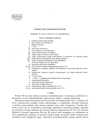 w którym istnieje gradient temperatury. D alszym badaczem rozwijają cym teorię generatorów termoelektrycznych był ALTENKIRCH [4], który w r. 1909 wykazał , że za pomocą