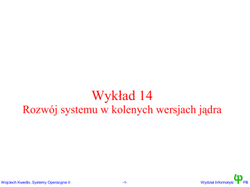 Wykład 14 Rozwój systemu w kolenych wersjach jądra Wojciech Kwedlo, Systemy Operacyjne II -1- Wydział Informatyki PB Plan wykładu ● Wstęp ● Zmiany związane z urządzeniami wejścia wyjścia. ● Pamięć podręczna wpisów katalogowych. ● Alokator plastrowy (ang. slab allocator )dla pamięci jądra. ● Drobnoziarniste mechanizmy blokowania dla celów SMP - wirujące blokady (ang. spin locks) oraz semafory. ● Wywłaszczanie jądra. ● Systemy plików z kroniką. Wojciech Kwedlo, Systemy Operacyjne II -2- Wydział Informatyki PB Wstęp ● ● ● ● ● Linuks jest utrzymywany przez setki ochotników z całego świata. Całością prac kieruje Linus Torvalds, do którego należy decyzja akceptacji zmian w kodzie. Linus przekazuje część uprawnień osobą odpowiedzialnym za poszczególne podsystemy. Np. osoba odpowiedzialna za podsystem IA64 (procesory Itanium) akceptuje zmiany w tym podsystemie. W schemacie numeracji jądra Linuksa numery kończące się liczbą parzystą oznaczają wersję stabilną a nieparzystą wersję rozwojową. Po sfinalizowaniu prac nad wersją rozwojową staje się ona kolejną w wersją stabilną (np. 2.5 => 2.6). Po jakimś czasie od wersji stabilnej odłącza się kolejna wersja rozwojowa (kolejną będzie 2.7). Przez pewien czas praca przebiega równolegle nad dwiema wersjami. Zmiany w wersji stabilnej teoretycznie polegają na wprowadzaniu poprawek i np. dodawaniu sterowników nowych urządzeń. Interfejsy pomiędzy podsystemami jądra nie ulegają zmianie (np. w przypadku sterowników jest to struktura file_operations). Podczas prac nad wersją rozwojową (i w końcu w nowej wersji stabilnej) wprowadzone są znaczne zmiany w interfejsach łączących podsystemy jądra. Może to prowadzić np. do konieczności zmian w kodzie źródłowym wszystkich sterowników urządzeń. W powyższy sposób z jądra „pozbywane są” sterowniki przestarzałych urządzeń, których nikt nie utrzymuje, np. dysk twardy XT. Wojciech Kwedlo, Systemy Operacyjne II -3- Wydział Informatyki PB Nowe urządzenia wejścia/wyjścia i nowe typy urządzeń ● ● Wynikają z pojawienia sią nowych szyn (PCI, USB, PCMCIA) i portów (SATA, AGP). – urządzenia typu „plug nad play” - system (albo BIOS) przydziela numery przerwań, portów we-wy i adresy pamięci. – urządzenia typu hot-plug – urządzenia z możliwością sterowania poborem energii (ACPI). – możliwość enumeracji wszystkich urządzeń podłączonych do szyny. – urządzenia z własną translacją adresów (AGP) Wprowadzenie powyższych standardów wymagało dodania nowych interfejsów do jądra. – Przeszukiwanie szyny. – Reakcja na podłączenie/odłącznie urządzenia do systemu. – Przełączenie w tryb oszczędzania energii. Wojciech Kwedlo, Systemy Operacyjne II -4- Wydział Informatyki PB Alokator plastrowy (ang. slab allocator) ● ● ● ● Wprowadzony po raz pierwszy w systemie Solaris 2.4 i zaimplementowany w Linuksie od wersji 2.2 Uniwersalny alokator pamięci kmalloc/kfree jest prosty w użyciu ale niezbyt wydajny. – Przeznaczony jest dla bloków pamięci o dowolnym (<128KB) rozmiarze i nie wykorzystuje faktu, że zdecydowana większość alokacji dotyczy struktur o określonych rozmiarach. Przykłady to i-węzły (struct inode), bufory (struct buffer_head), otwarte pliki (struct file), pakiety sieciowe (struct sk_buff). – Zastosowanie odrębnego alokatora dla każdej z tych struktur spowodowałoby, że ten odrębny alokator obsługiwałby żądania o stałym rozmiarze, co znacznie uprościłoby jego implementację oraz pozwoliłoby na znaczny wzrost wydajności. Dodatkowy alokator plastrowy przeznaczony jest do alokacji/dealokacji bloków o stałym rozmiarze (rozmiar ustalony jest w momencie tworzenia instancji alokatora zwanej pamięcią podręczną). Pamięć podręczna dla bloków stałego rozmiaru jest podzielona na plastry (składające się z kilku stron pamięci). Wewnątrz plastra przechowywane są obiekty o stałym rozmiarze. Zwiększa to znacznie wydajność alokacji/dealokacji. – Ponadto zoptymalizowano przydział tak, aby optymalnie wykorzystać pamięć podręczną procesora (różne przesunięcie pierwszego obiektu od początku plastra) Wojciech Kwedlo, Systemy Operacyjne II -5- Wydział Informatyki PB API alokatora plastrowego (jądro 2.2) kmem_cache_t * kmem_cache_create(const char *name, size_t size, size_t offset, unsigned long flags, void (*constructor)(void *, kmem_cache_t *, unsigned long flags), void (*destructor)(void *, kmem_cache_t *, unsigned long flags) ); moje_cache=kmem_cache_create(„Moje struktury”, sizeof(struct moja_stuktura), 0, 0, NULL, NULL); ● Stworzenie nowej pamięci podręcznej o nazwie name dla obiektów o rozmiarze size, (offset=0). constructor i destructor to adresy funkcji inicjalizujących i deinicjalizujących obiekt, w pamięci jądra rzadko używane. Alokator stara się re-użytkować obiekty aby zaoszczędzić na pamięci. flags to bitowa suma SLAB_NO_REAP (jądro nie próbuje odzyskiwać całkowicie wolnych plastrów), SLAB_HWCACHE_ALIGN (wyrównaj obiekty do granicy rozmiaru wiersza sprzętowej pamięci cache) SLAB_CACHE_DMA (przydzielaj obiekty w pamięci dostępnej dla ISA DMA). void *kmem_cache_alloc(kmem_cache_t *cache, int flags); moj_obiekt=kmem_cache_alloc(moje_cache,GFP_KERNEL); ● Alokacja obiektu, flagi takie same jak dla kmalloc (GFP_KERNEL/GFP_ATONMIC). void kmem_cache_free(kmem_cache_t *cache, const void *object); kmem_cache_free(moje_cache, moj_obiekt); ● Zwolnienie obiektu void *kmem_cache_destory(kmem_cache_t *cache); kmem_cache_destroy(moje_cache); ● Usunięcie pamięci podręcznej (instancji alokatora) i zwolnienie pamięci wszystkich płyt. Wojciech Kwedlo, Systemy Operacyjne II -6- Wydział Informatyki PB Pamięć podręczna wpisów katalogowych (ang. dentry cache) ● ● ● ● ● ● Jej wprowadzenie wiąże się z dużą złożonością algorytmu tłumaczenia ścieżki na numer