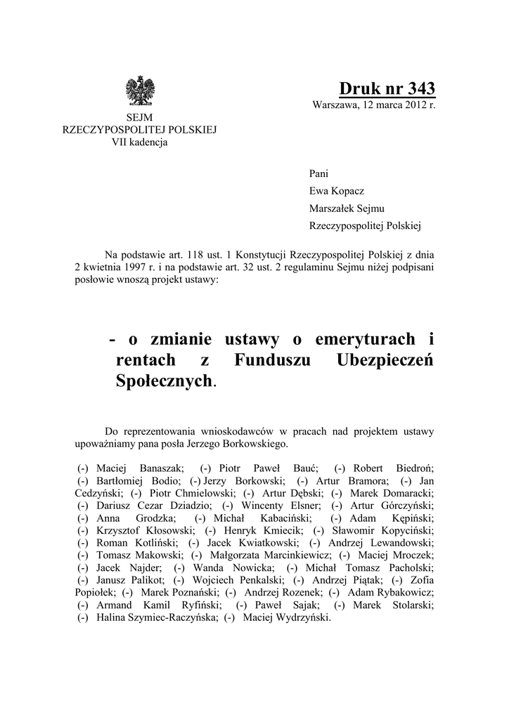 GMS-WP-173-9112, poselskim projektem ustawy o zmianie ustawy o emeryturach
