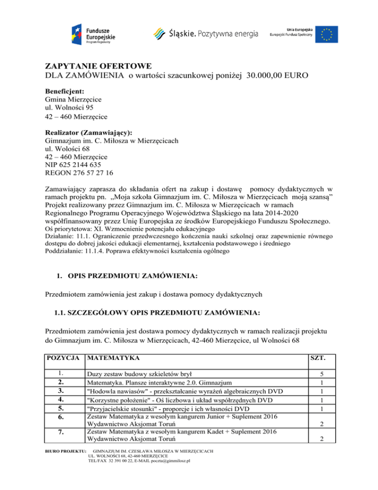Zapytanie ofertowe 2 - Gimnazjum w Mierzęcicach